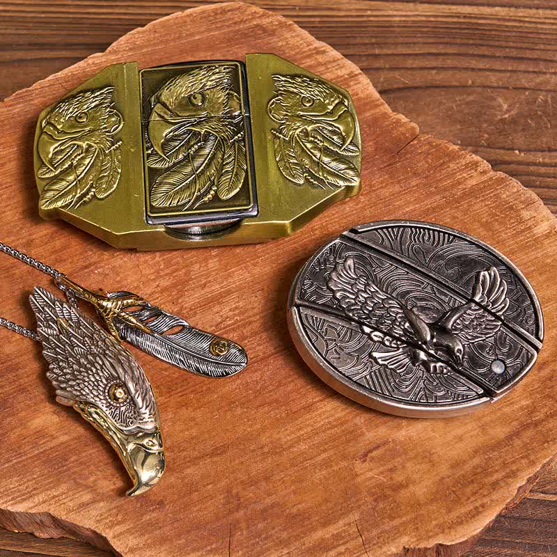 - Package: 1 Eagle Knife Buckle, 1 Eagle Lighter Buckle, 1 Eagle & Feather Pendant with blade