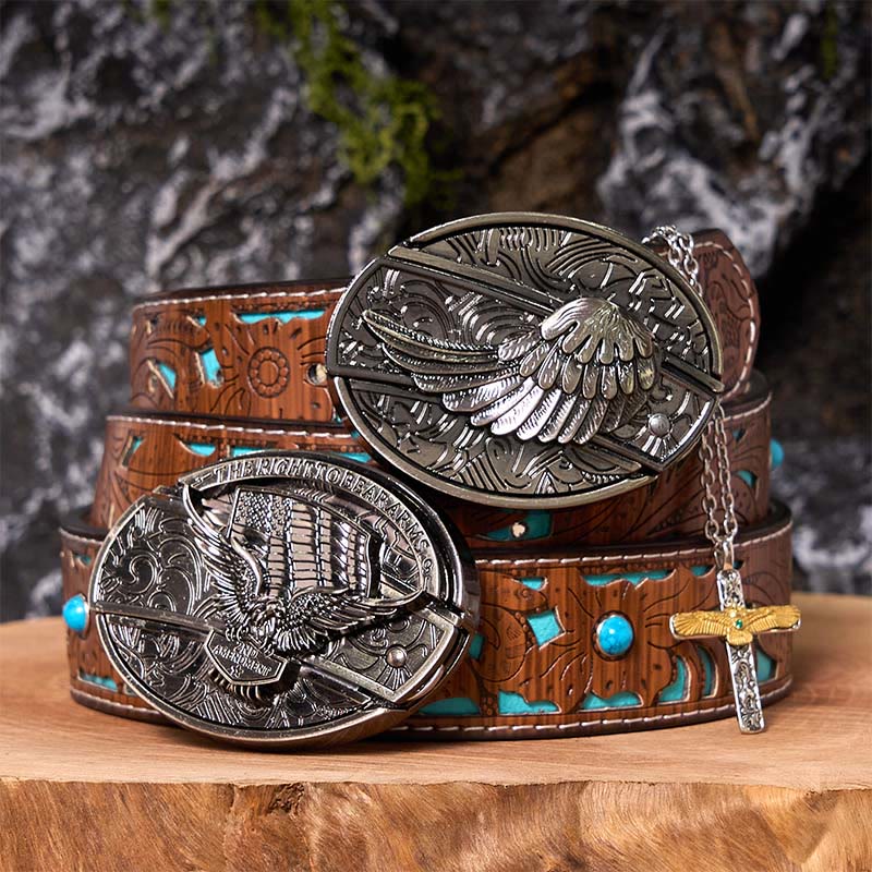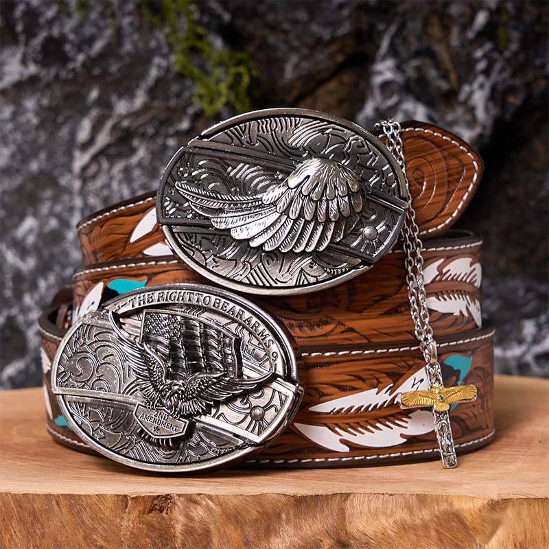 - DIY eagle flag buckle and angel wings buckle is made of high quality alloy and durable. With a slight push of your finger, the center of the belt buckle can easily slide out.