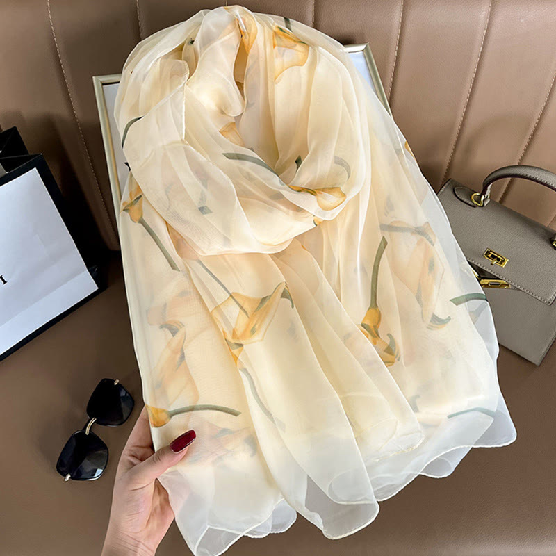Crafted from lightweight flowy fabric, this scarf features delicate floral art print details that add artistic charm and elegant drape. It comes with soft and breathable texture for comfortable wearing. Suitable for all seasons, it also makes a charming gift for fashion lovers on holidays or special moments.