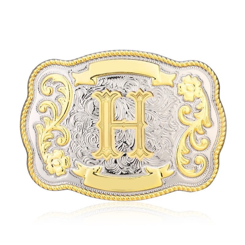 Golden & Silver DIY Western Initial Letter Buckle Leather Belt - H - Without Belt - image 7