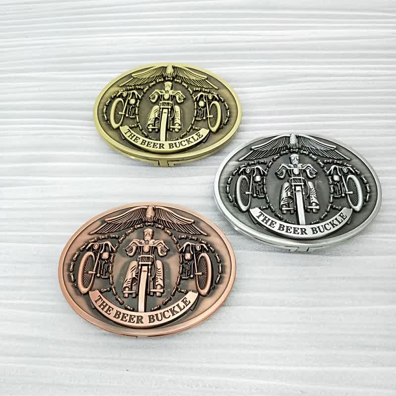 - Opening the belt buckle, simply flip up the loop and it expands to become the perfect beer holder.