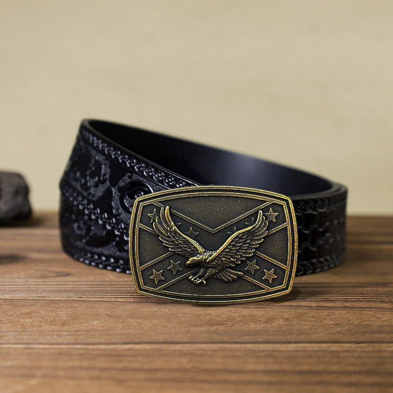 Men's DIY Eagle Flag Pattern Buckle Leather Belt