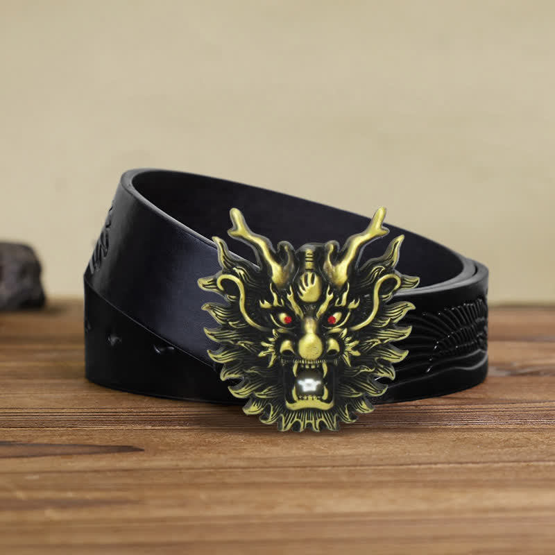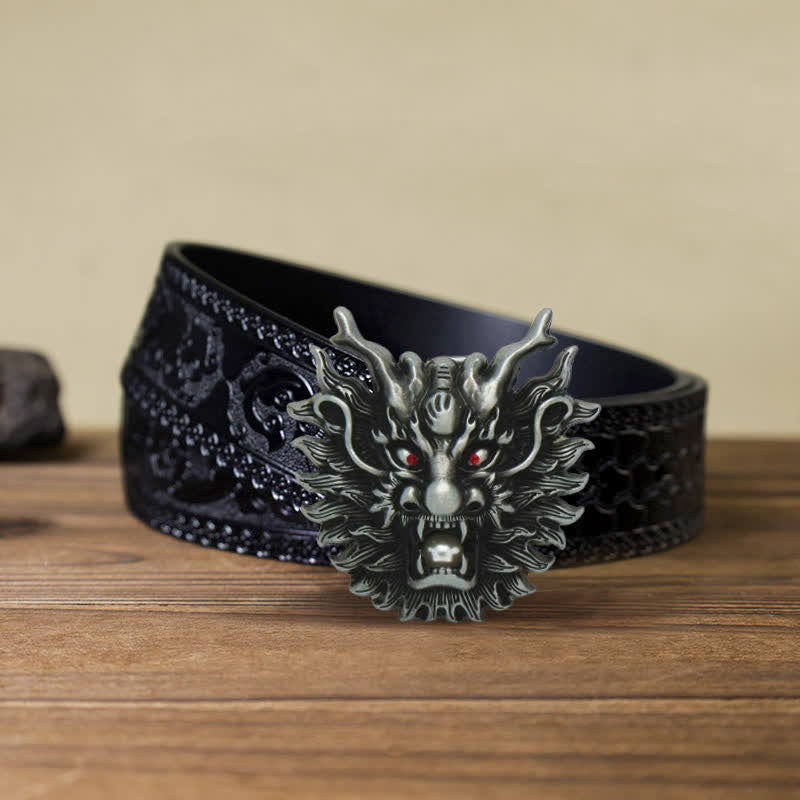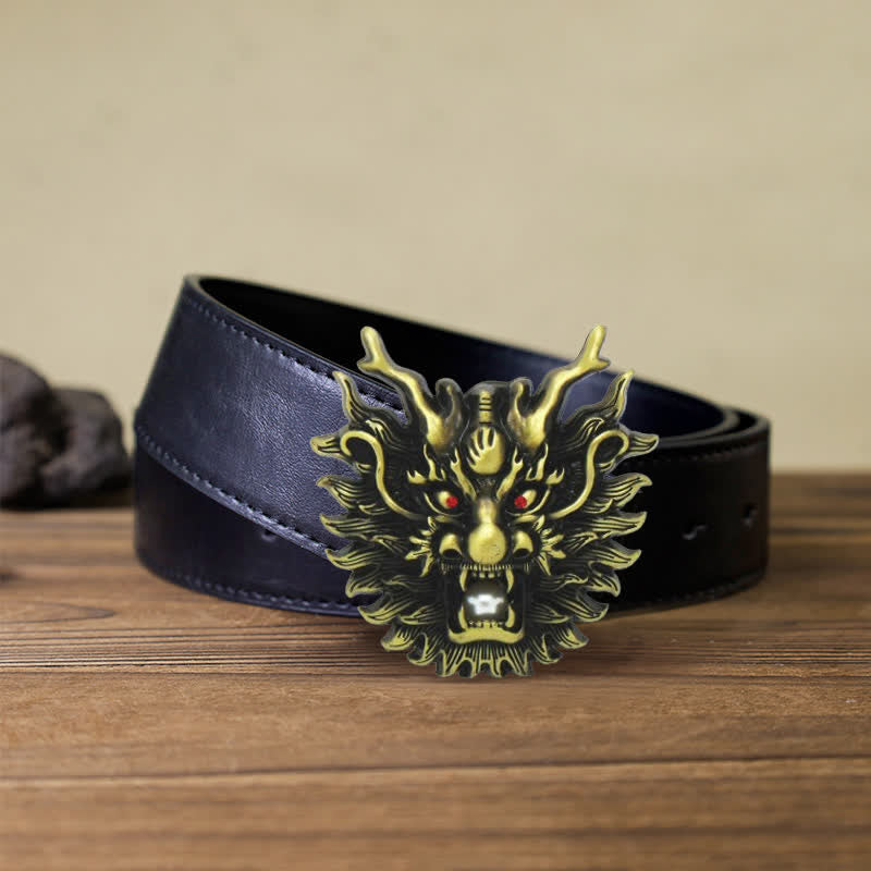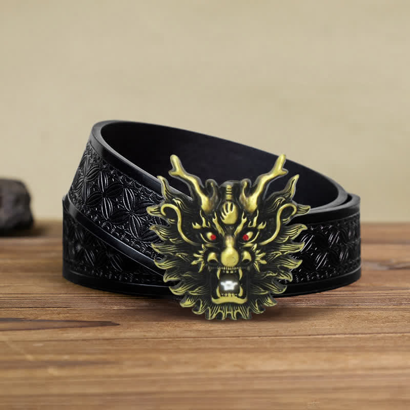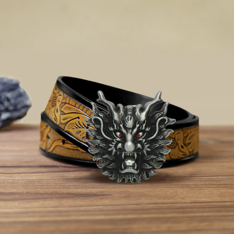 Men's DIY Fiery Dragon White Pearl Buckle Leather Belt