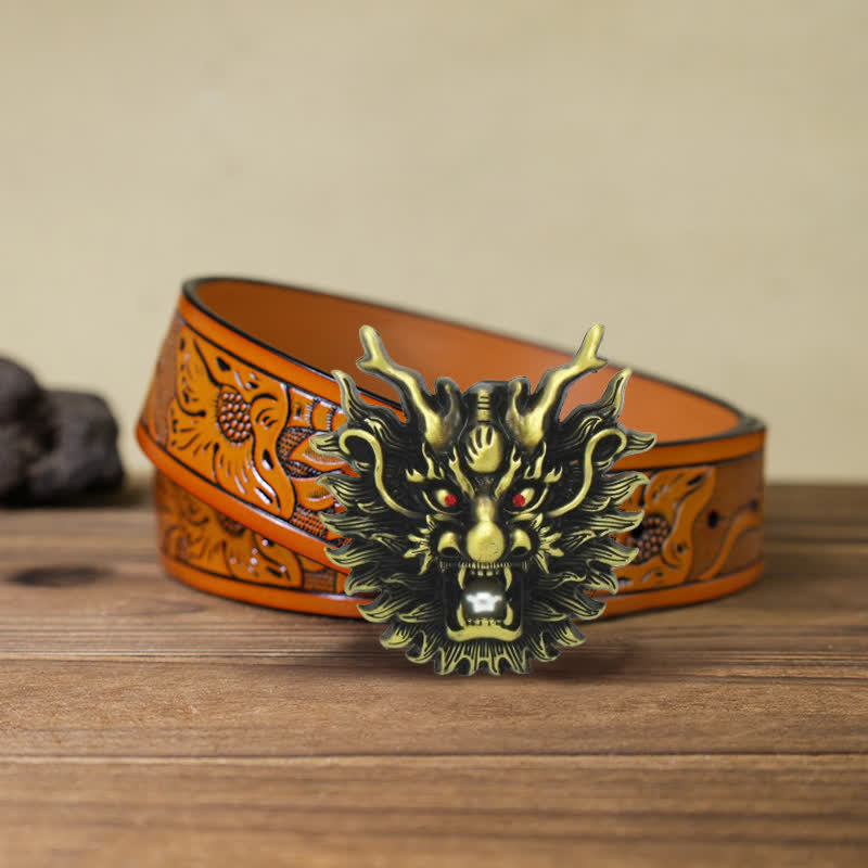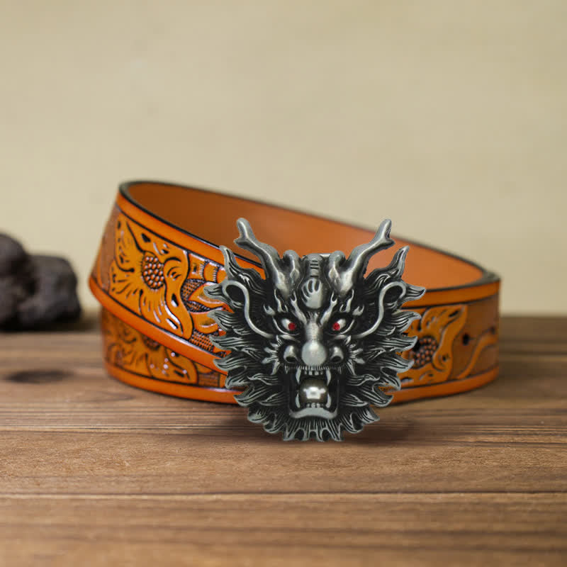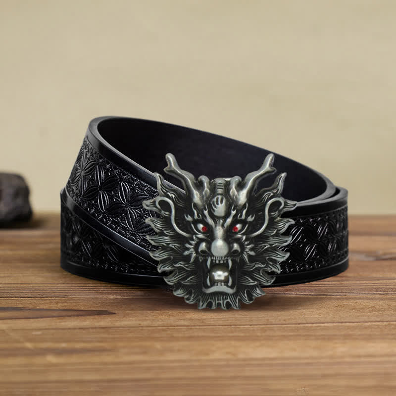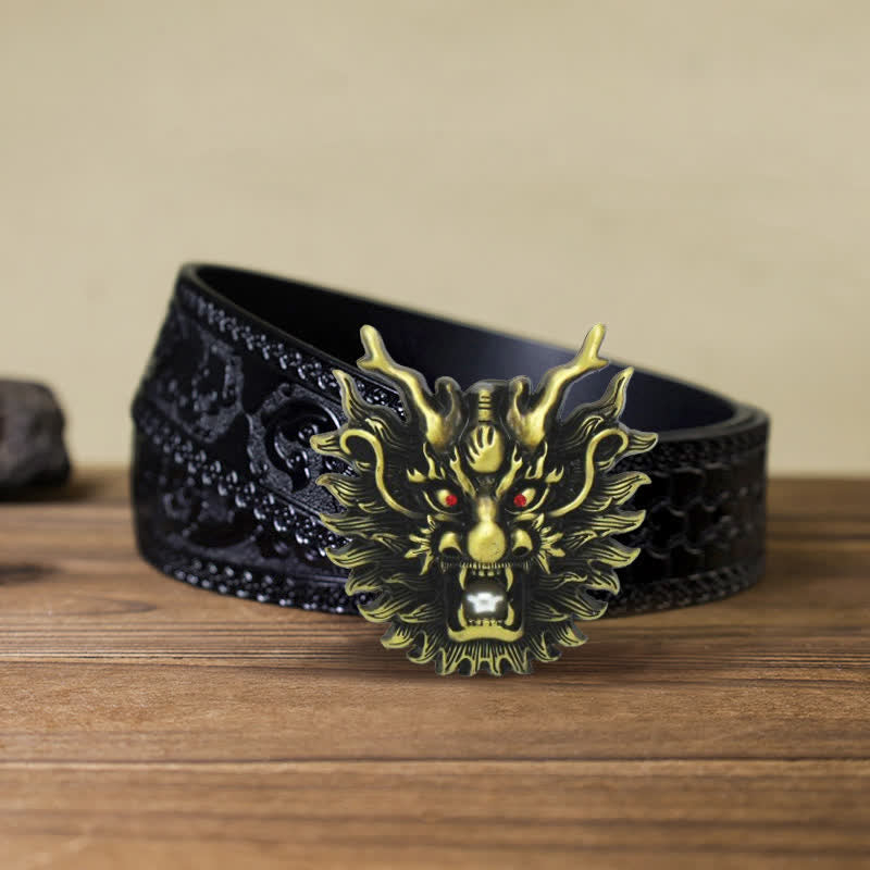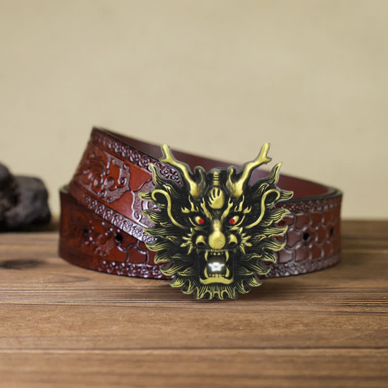 Men's DIY Fiery Dragon White Pearl Buckle Leather Belt