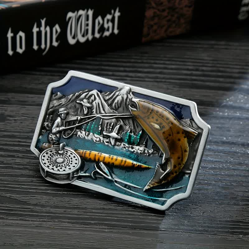 This durable belt buckle features fish and fishing equipment pattern for the avid fisherman. Its enamel hue adds a touch of shimmer, making it the perfect choice to stand out in the crowd.