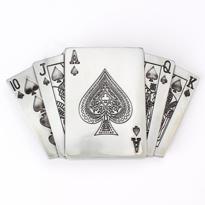 Stylish way to hold up your pants with this cool Royal Flush belt buckle. Great belt buckle for Rockers, Card Players, CosPlay, and Casino lovers alike.