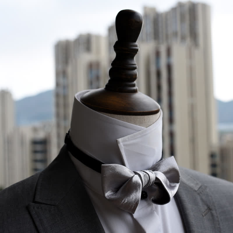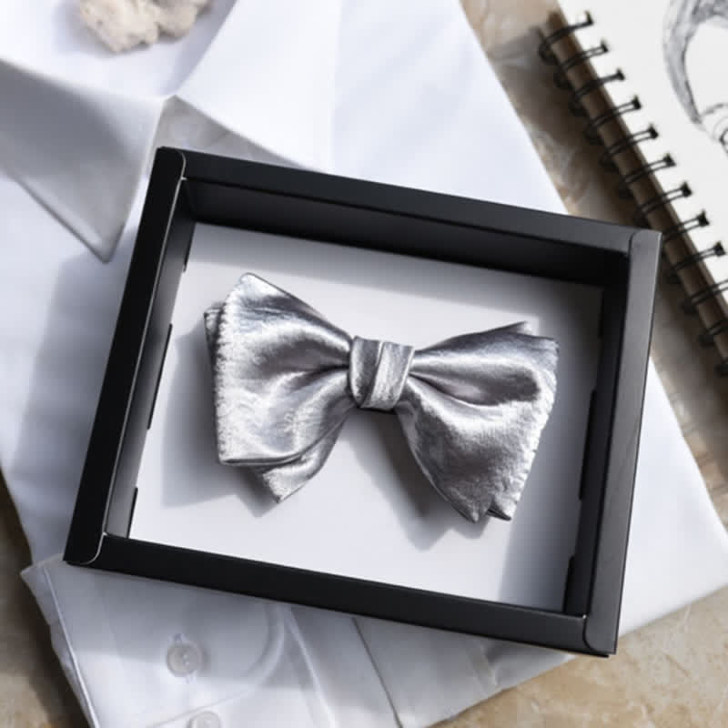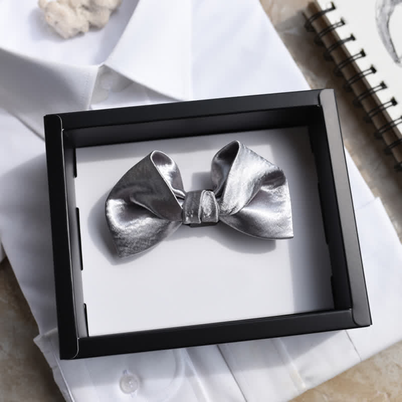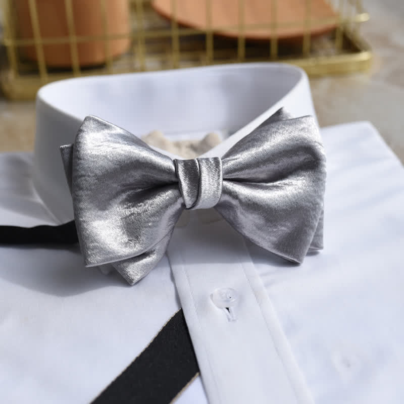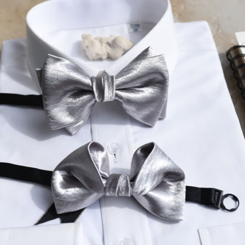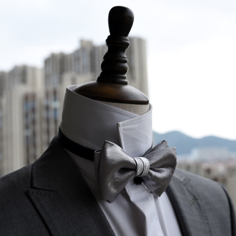 Men's Trendy Glossy Silver Gray Double Layered Bow Tie