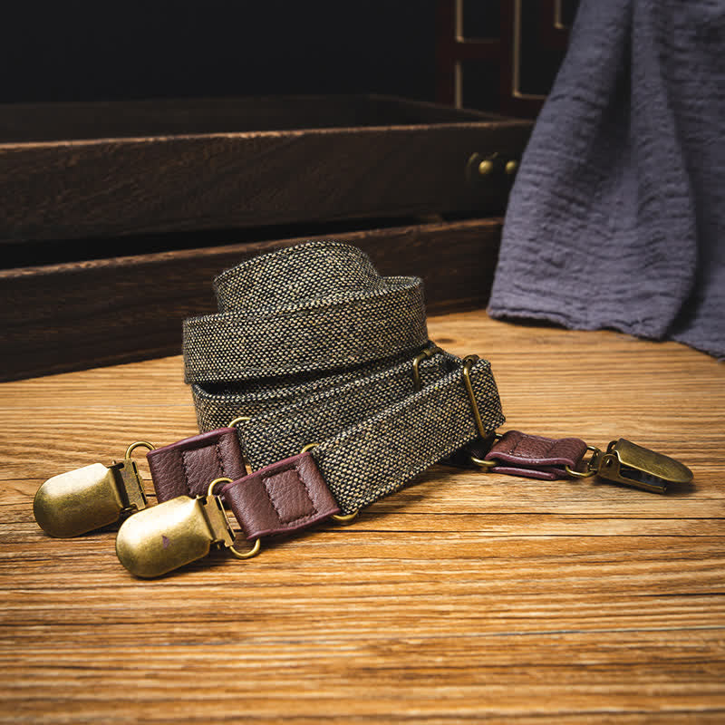 Kid's British Style Vintage Herringbone Plaid Elastic Suspenders