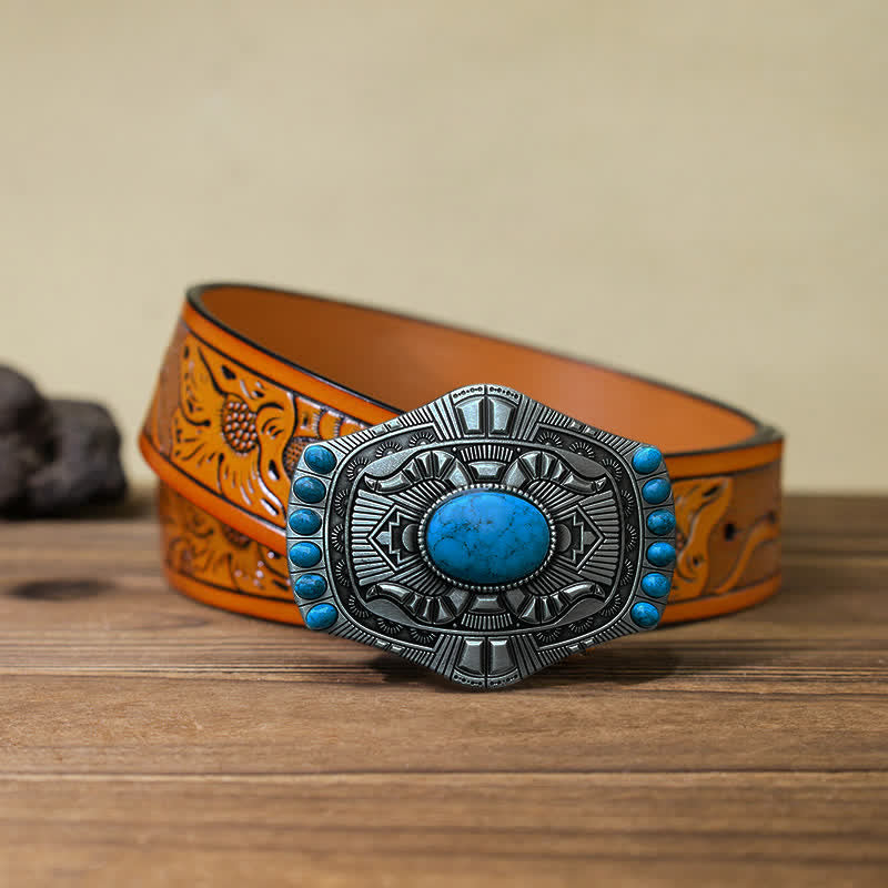 Men's DIY Artificial Turquoise Bohemia Buckle Leather Belt