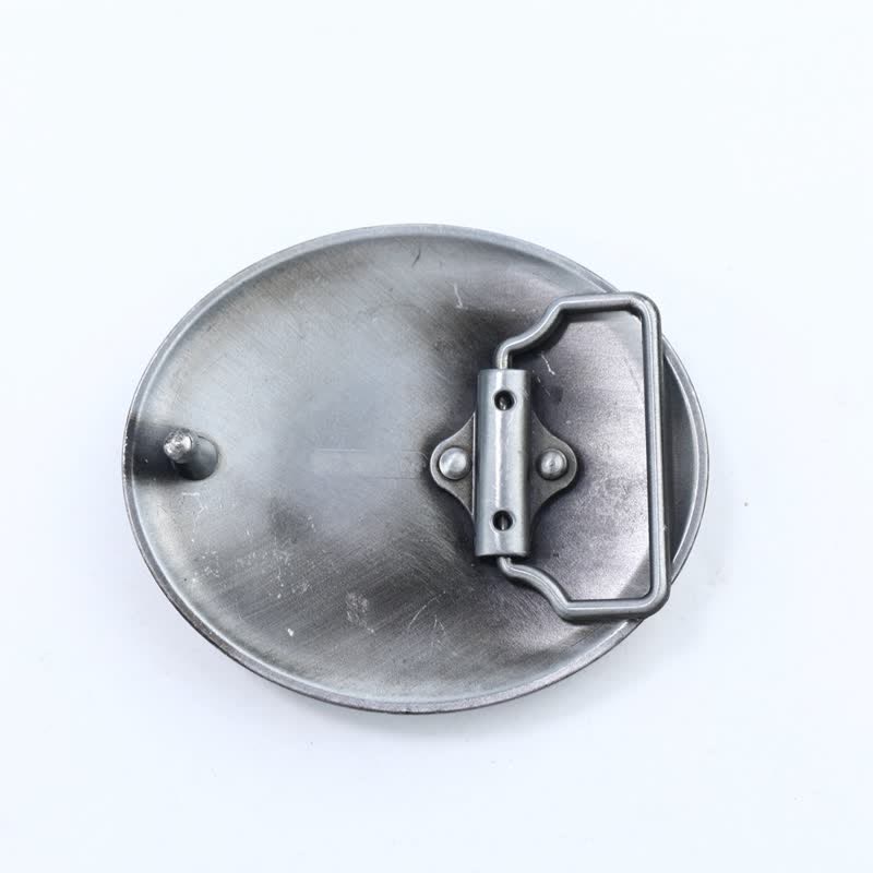 This oval vintage cowboy belt buckle showcases a beautiful turquoise stone at its center, four small turquoise stones were set at north, south, east and west. Around the edge is a rope pattern border.