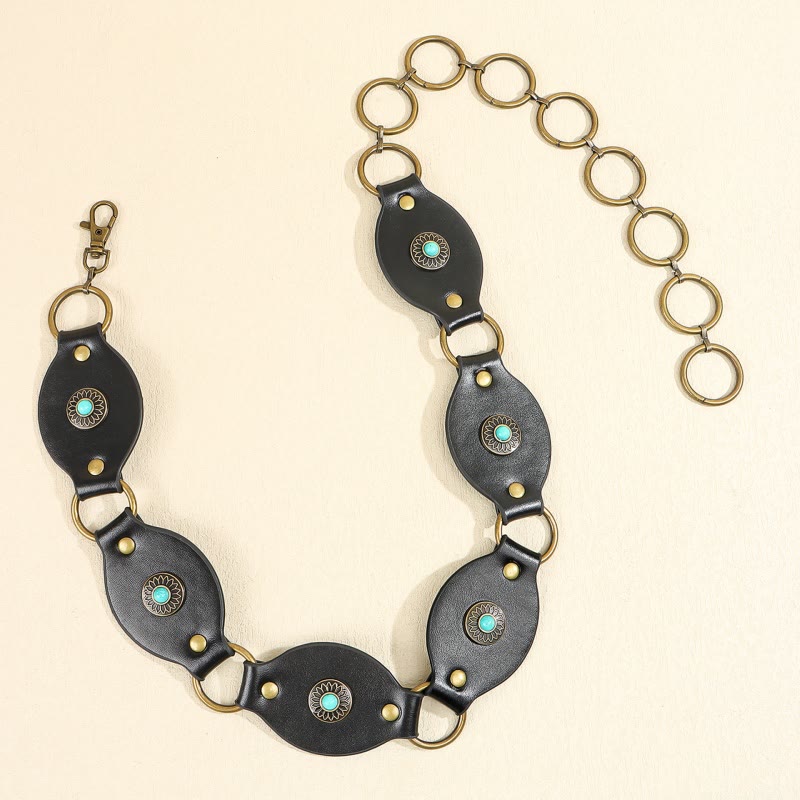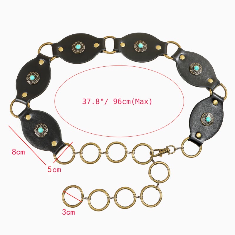Vintage Turquoise Rivet Belt Metal Clasp Leather Belt