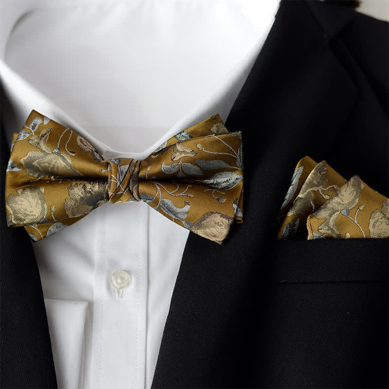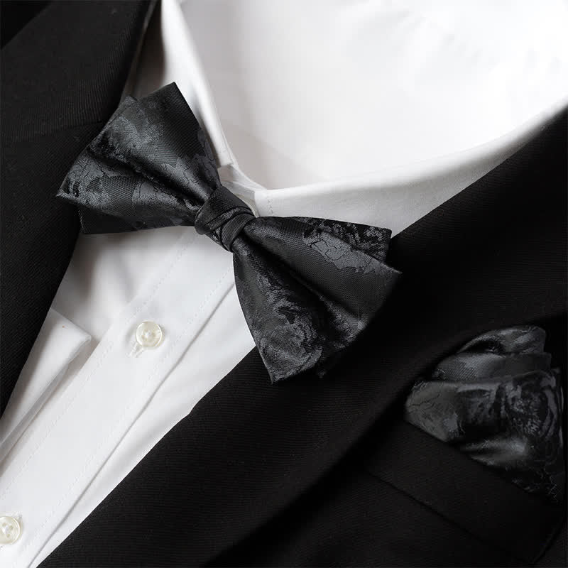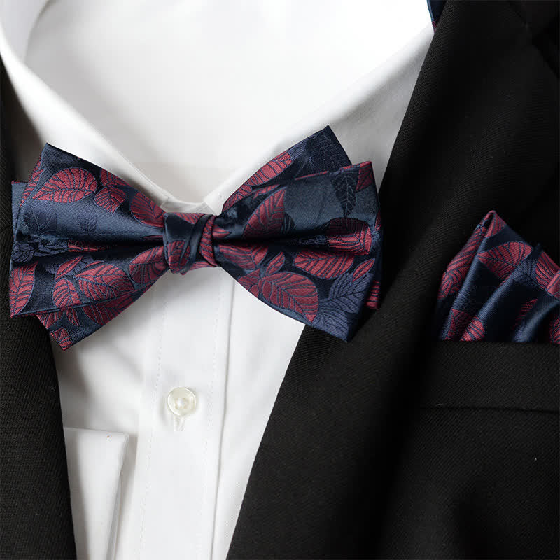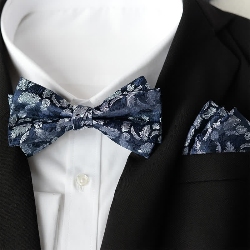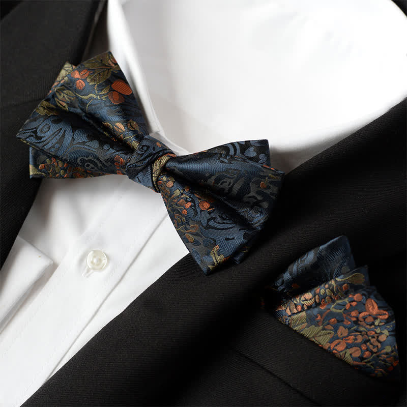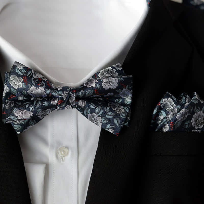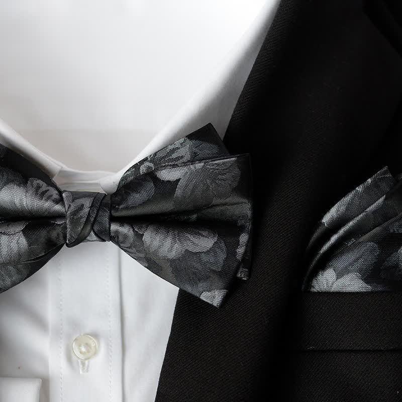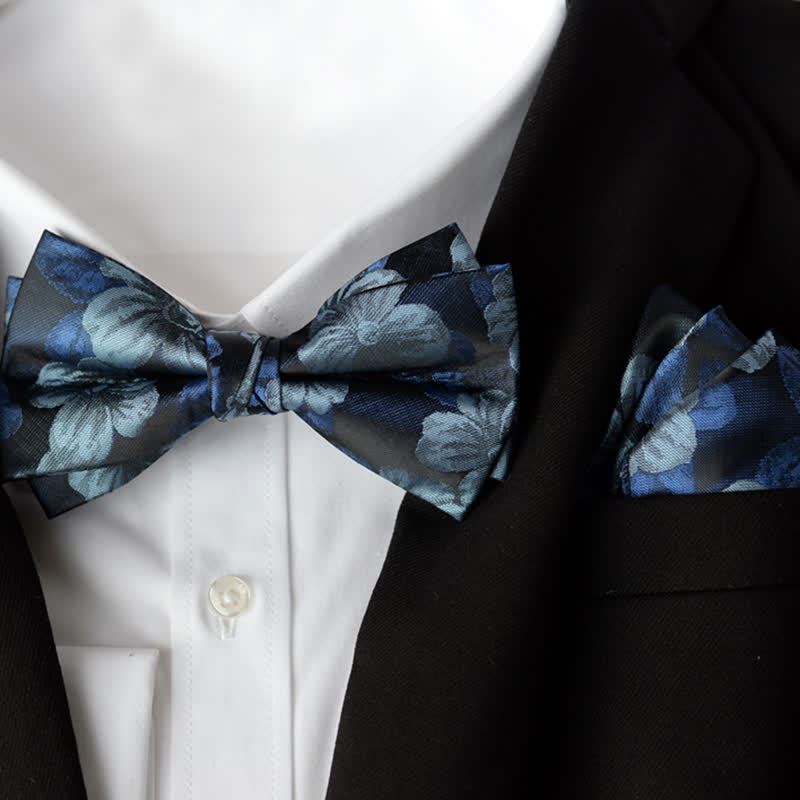 2Pcs Men's Elegant Flower Handkerchief Double Layered Bow Tie Set