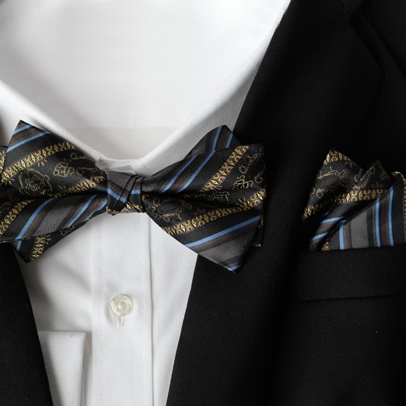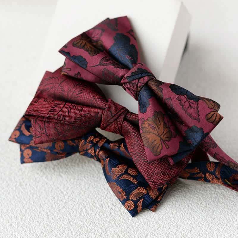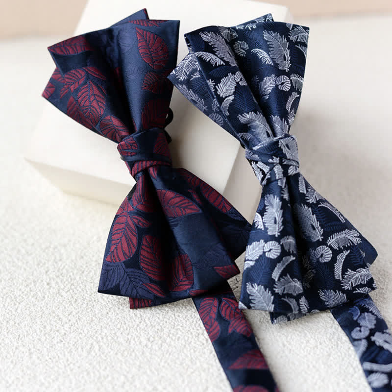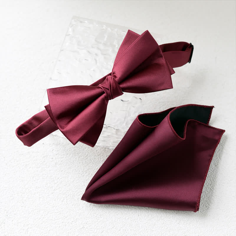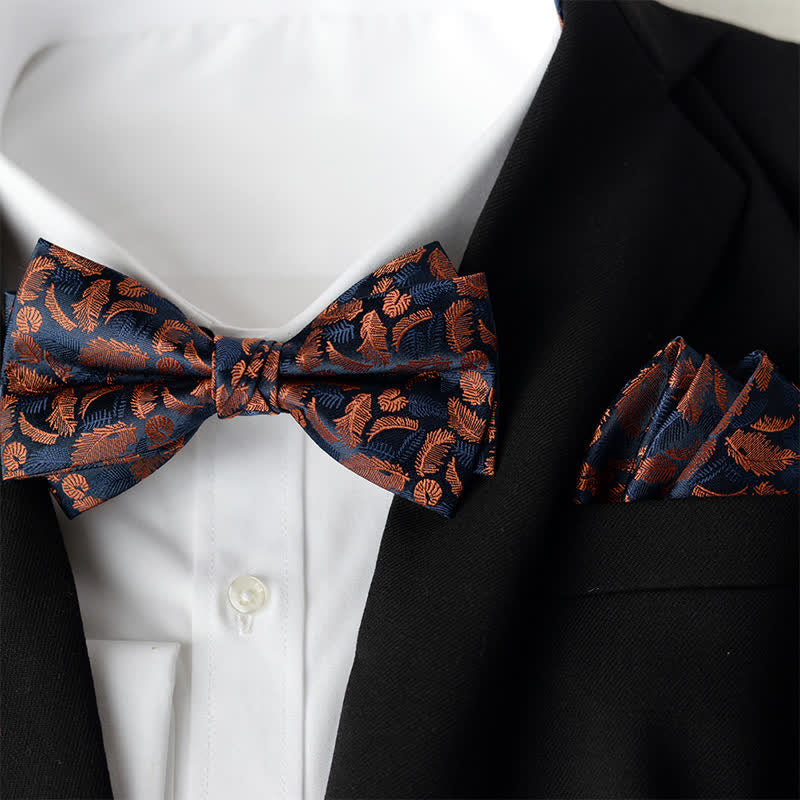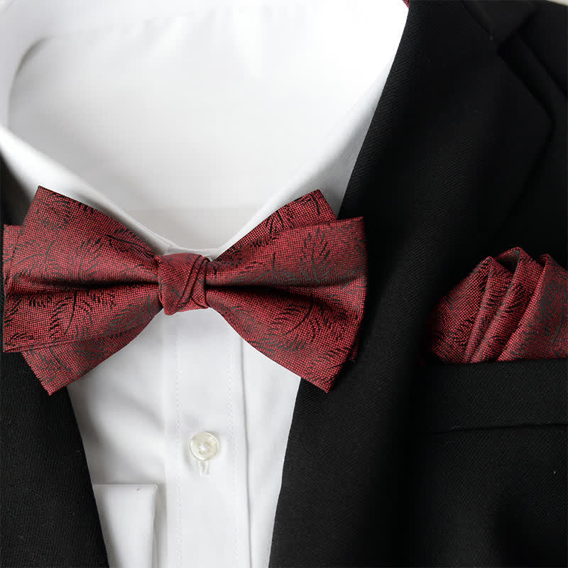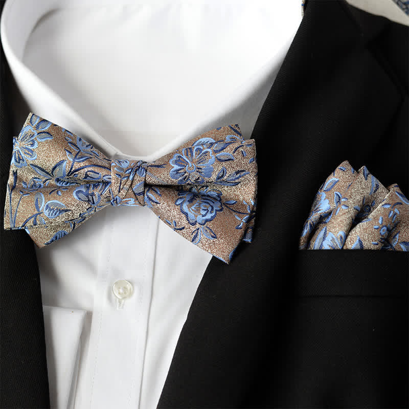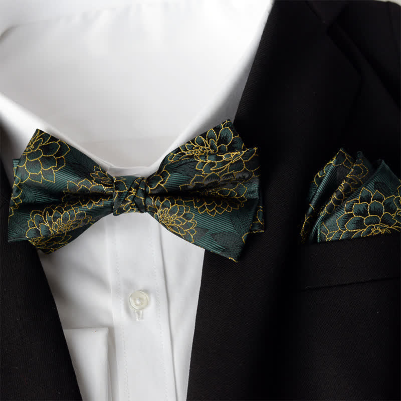 2Pcs Men's Elegant Flower Handkerchief Double Layered Bow Tie Set