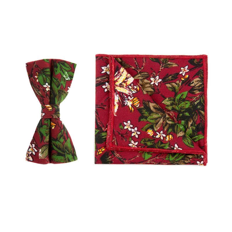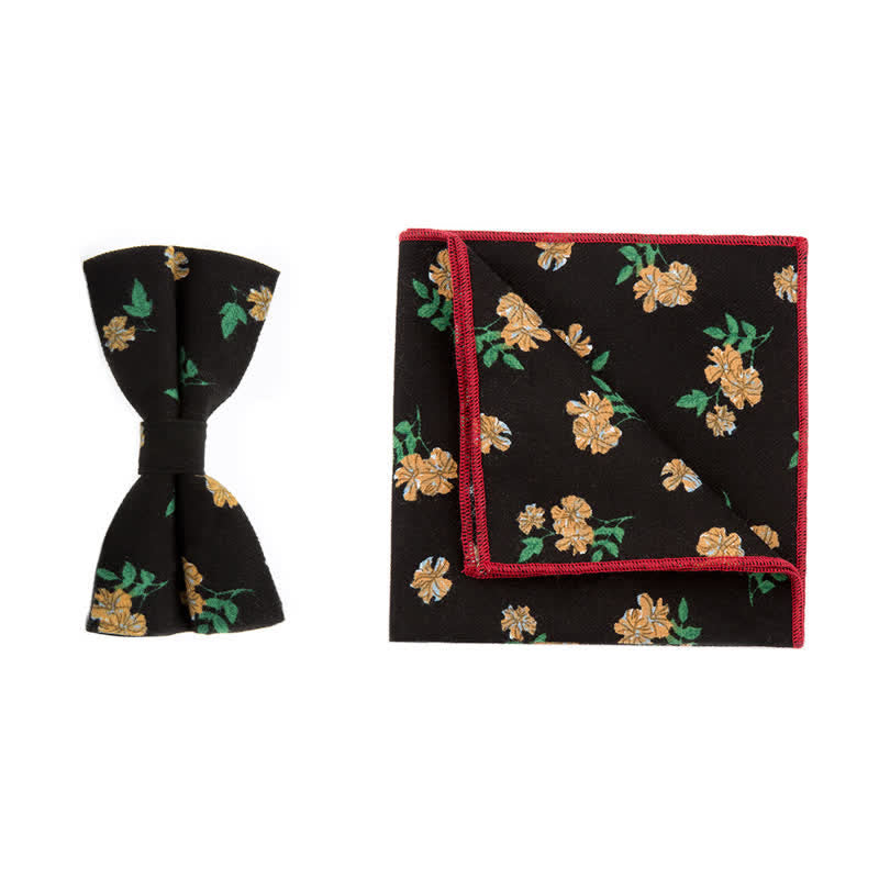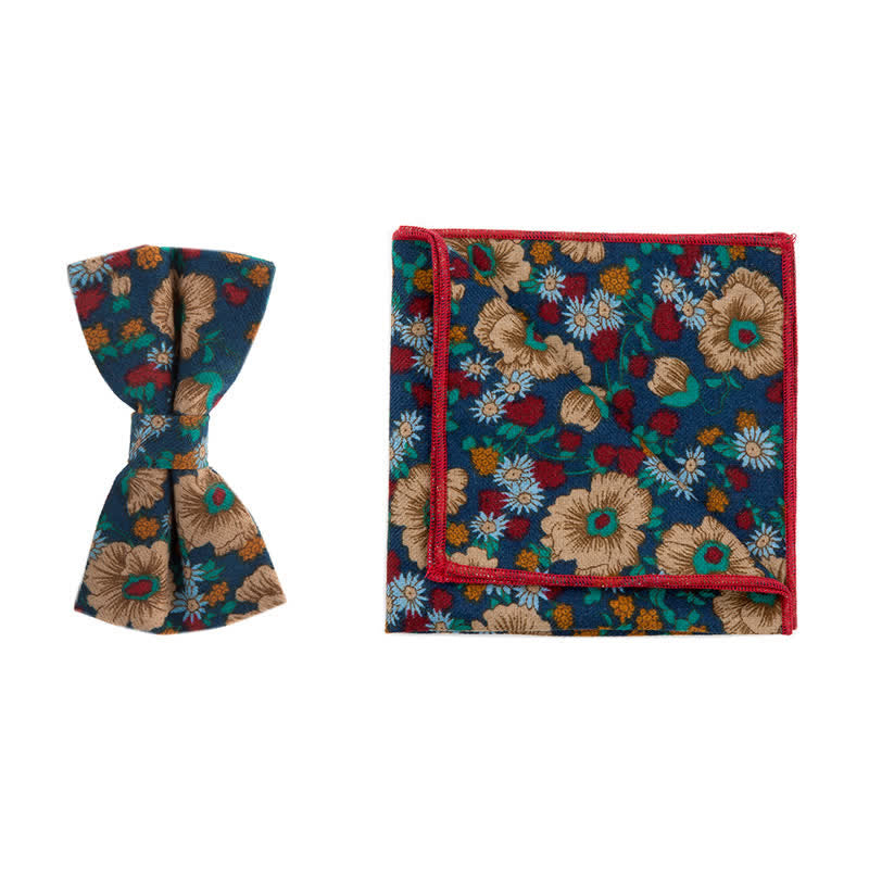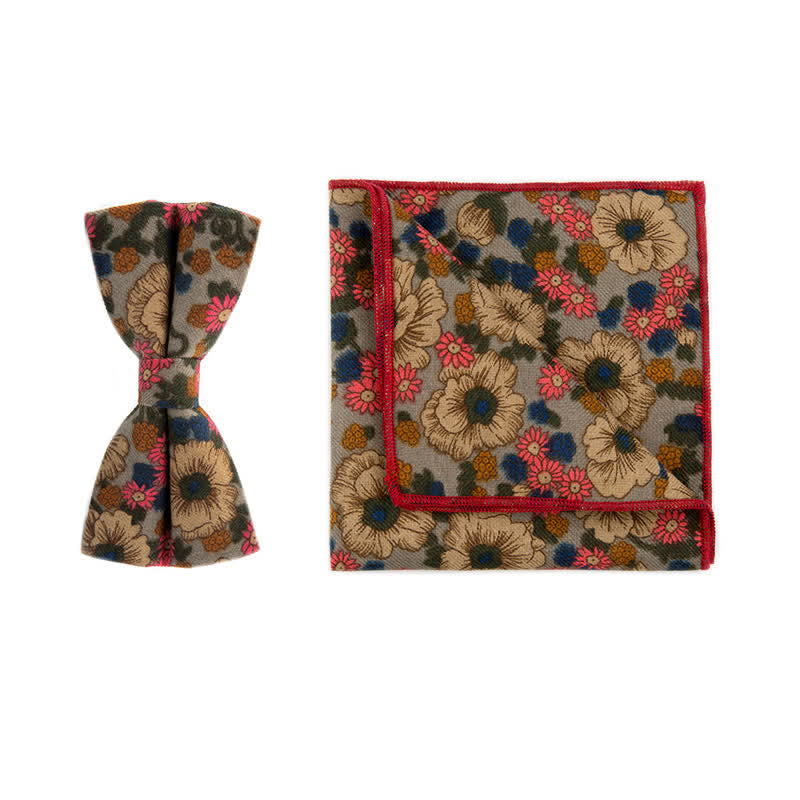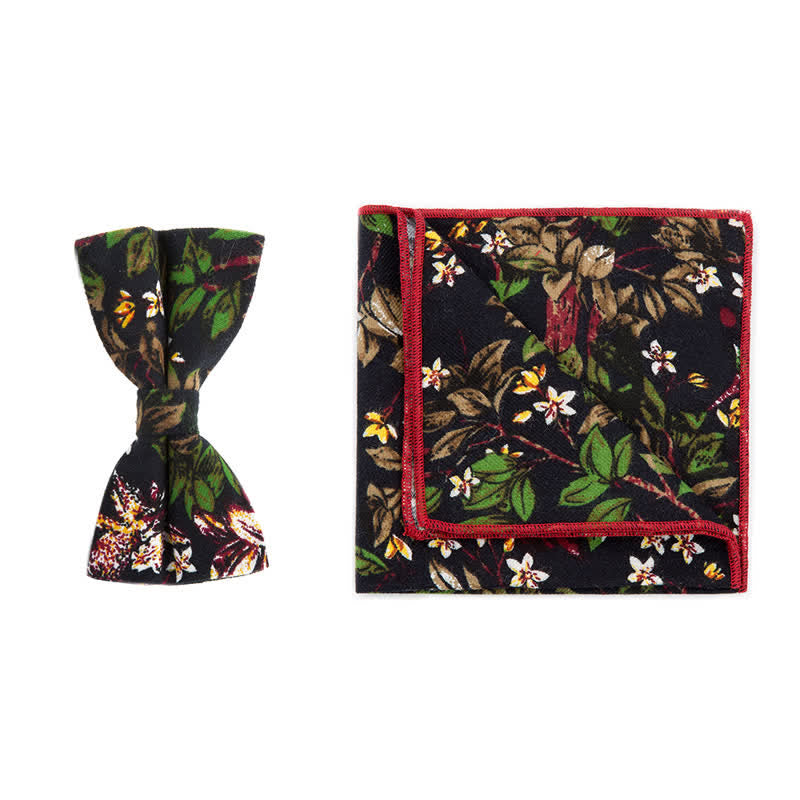 2Pcs Men's Flower Cotton Handkerchief Bow Tie Set