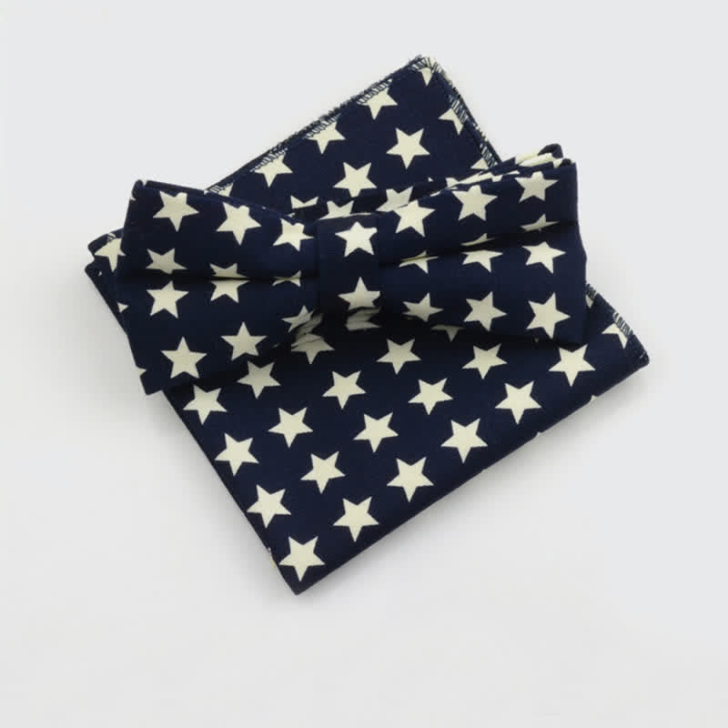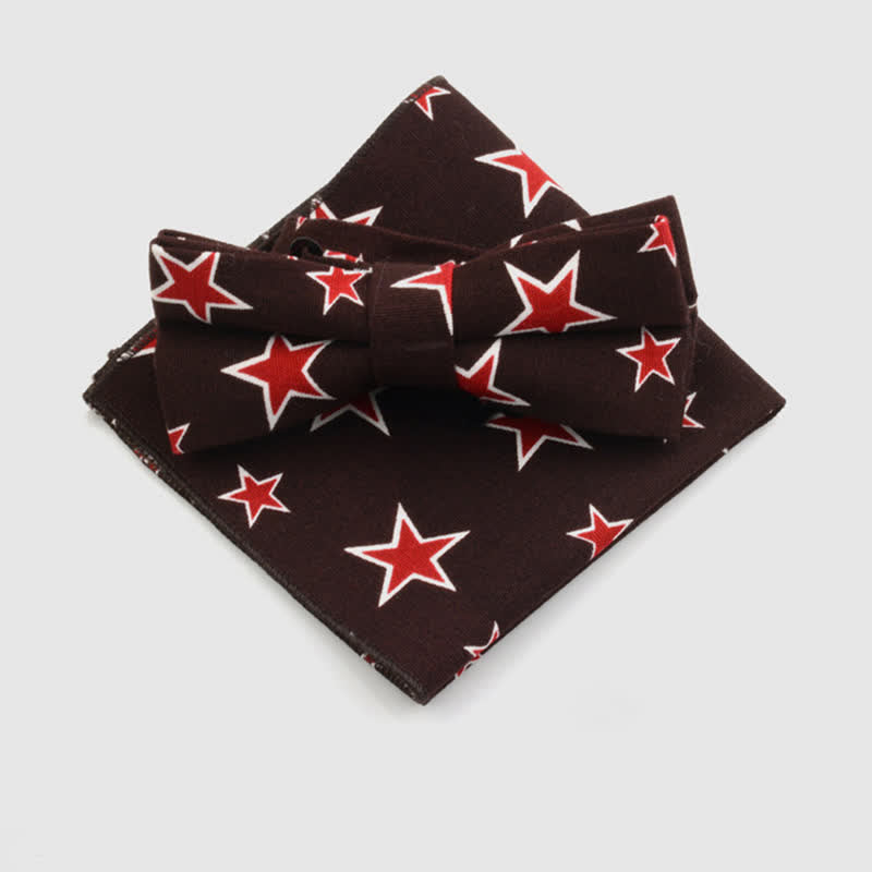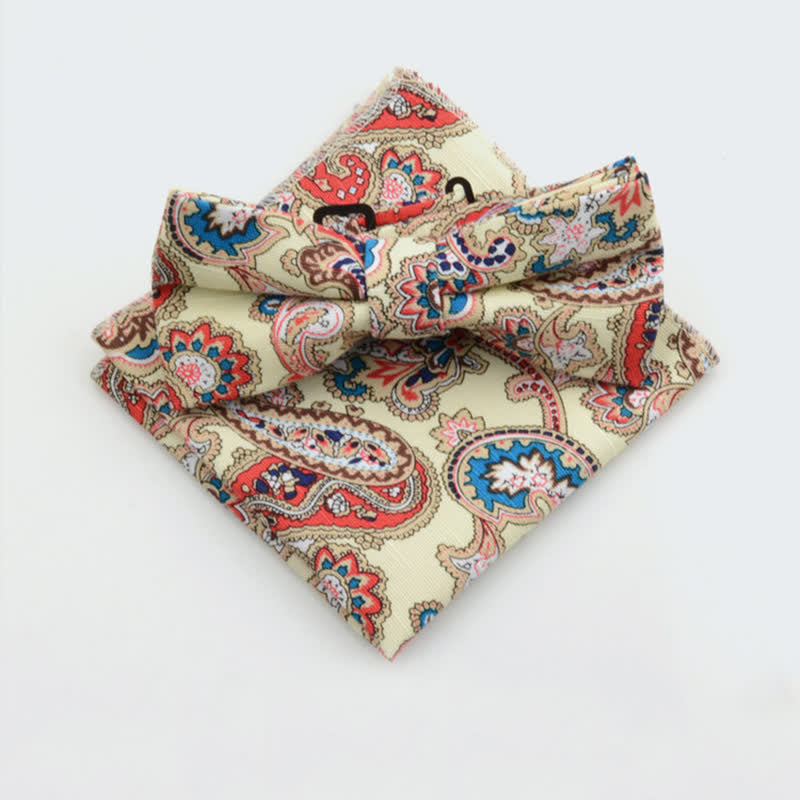 2Pcs Men's Paisley Flower Cotton Handkerchief Bow Tie Set