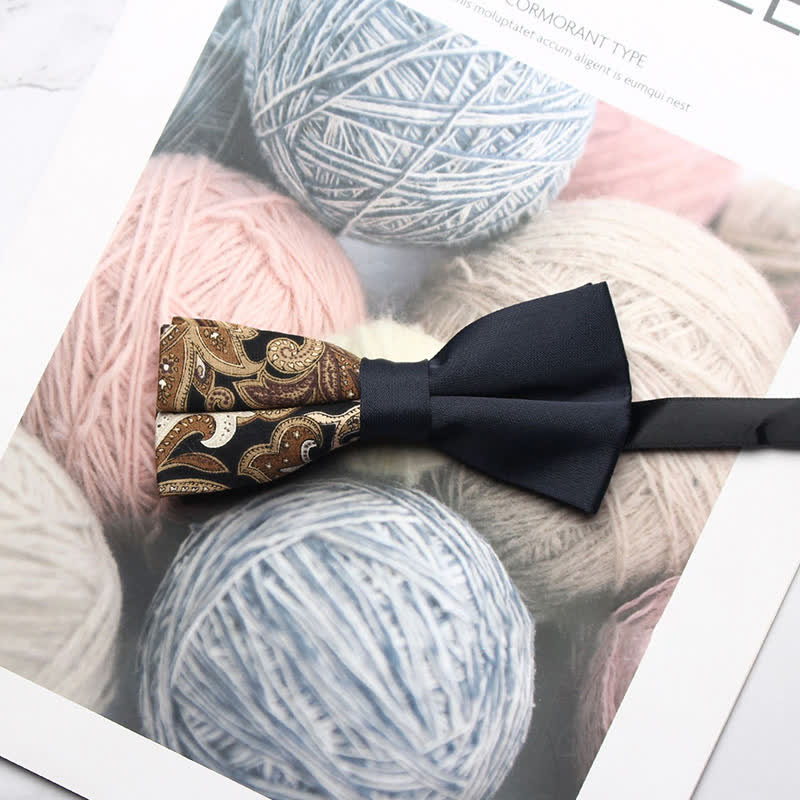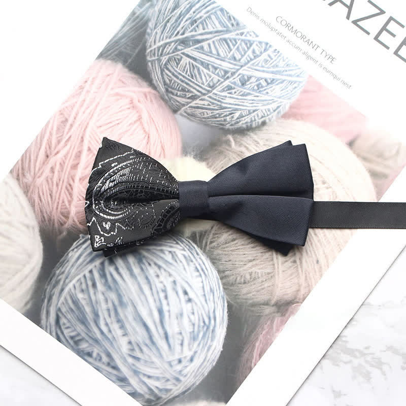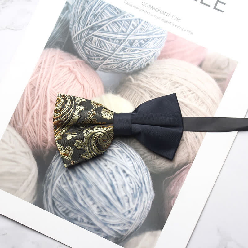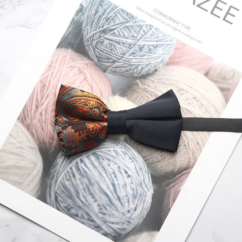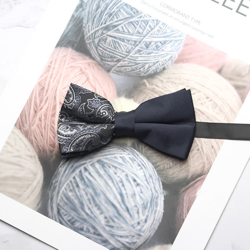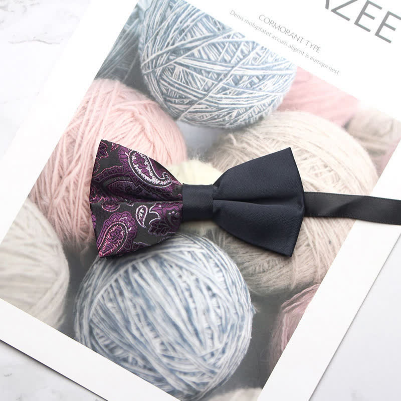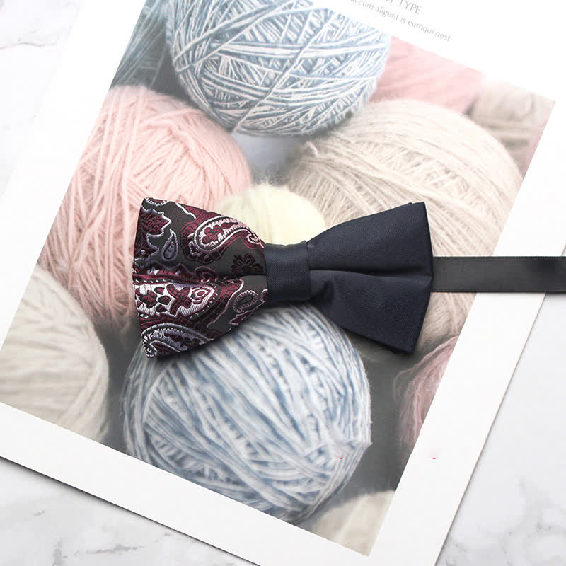 - The bow tie has subtle paisley patterns that give it a distinctive look.