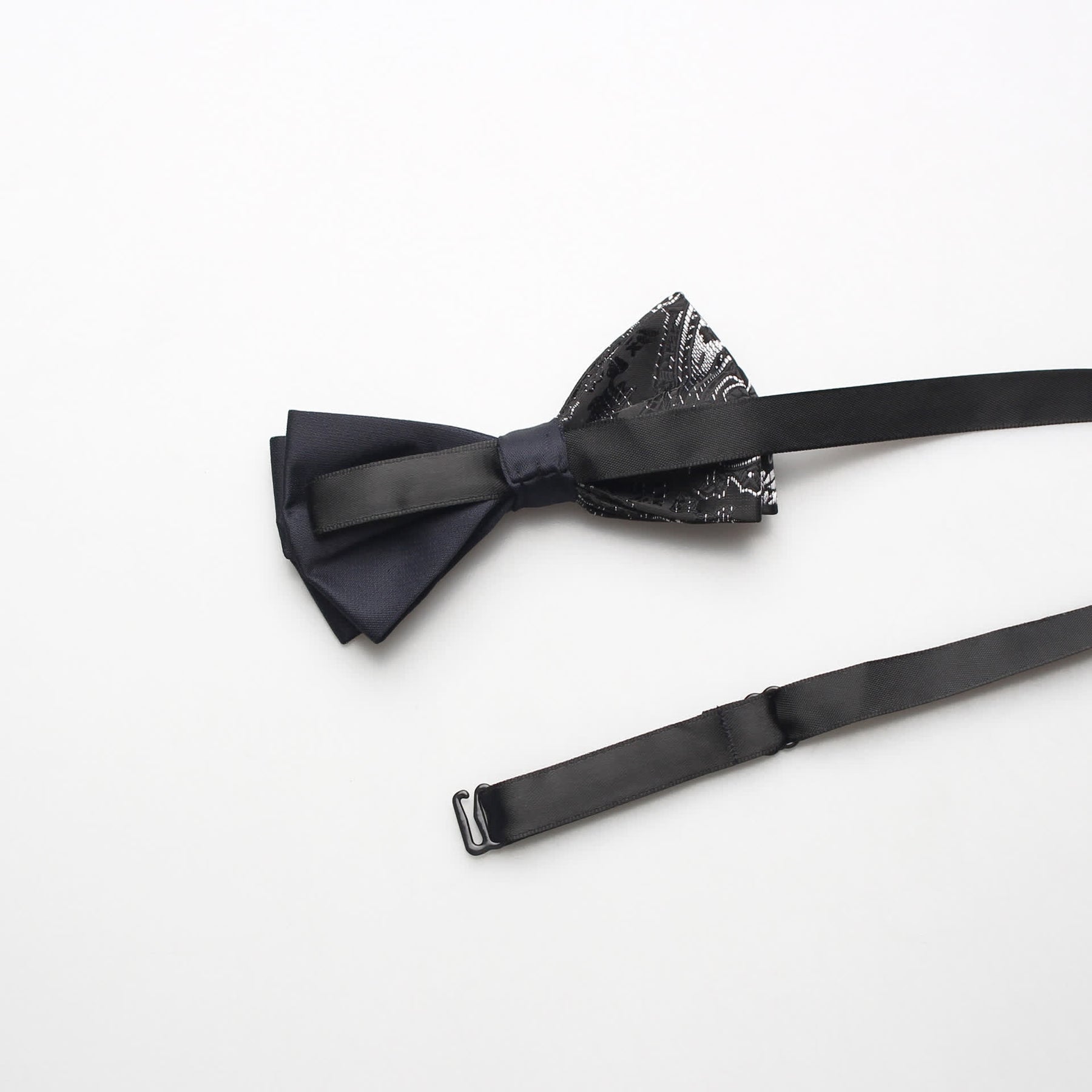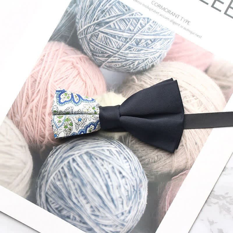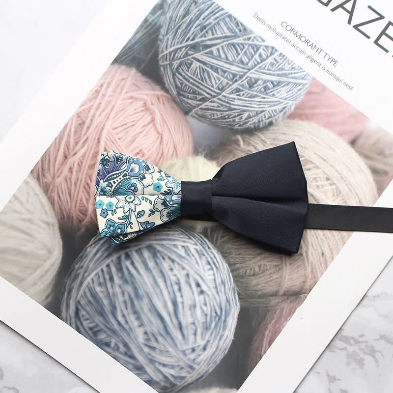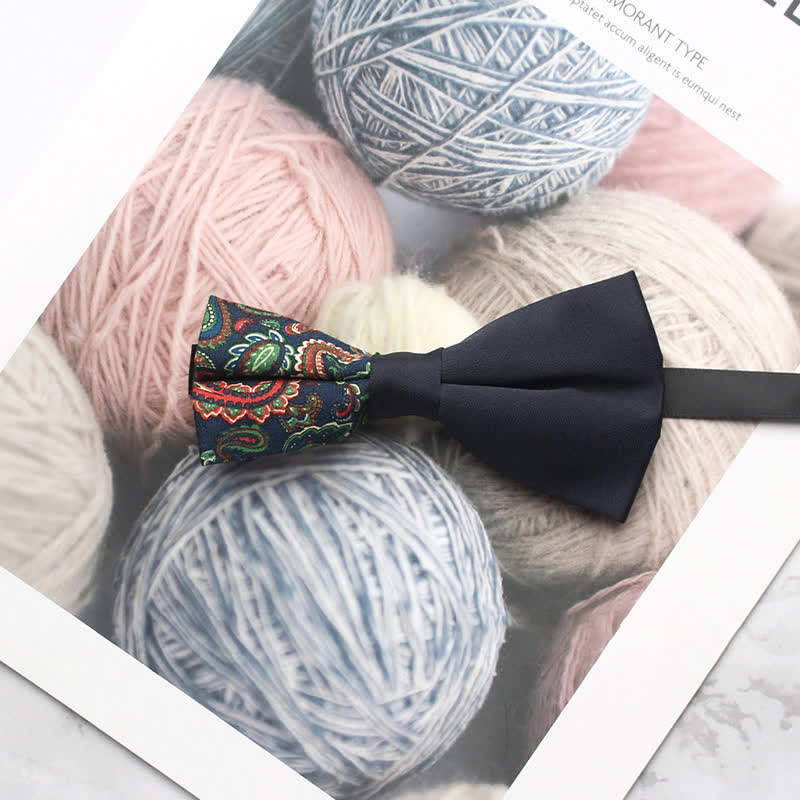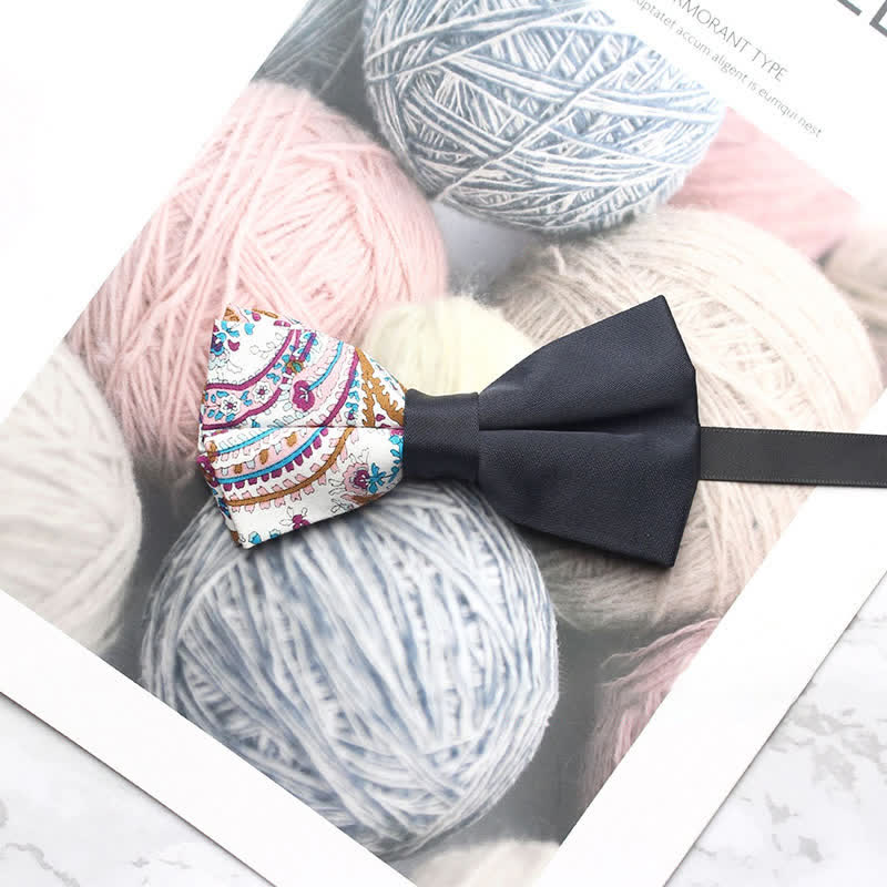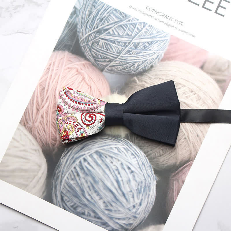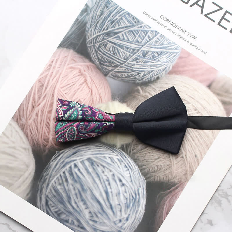 - The bow tie has subtle paisley patterns that give it a distinctive look.
