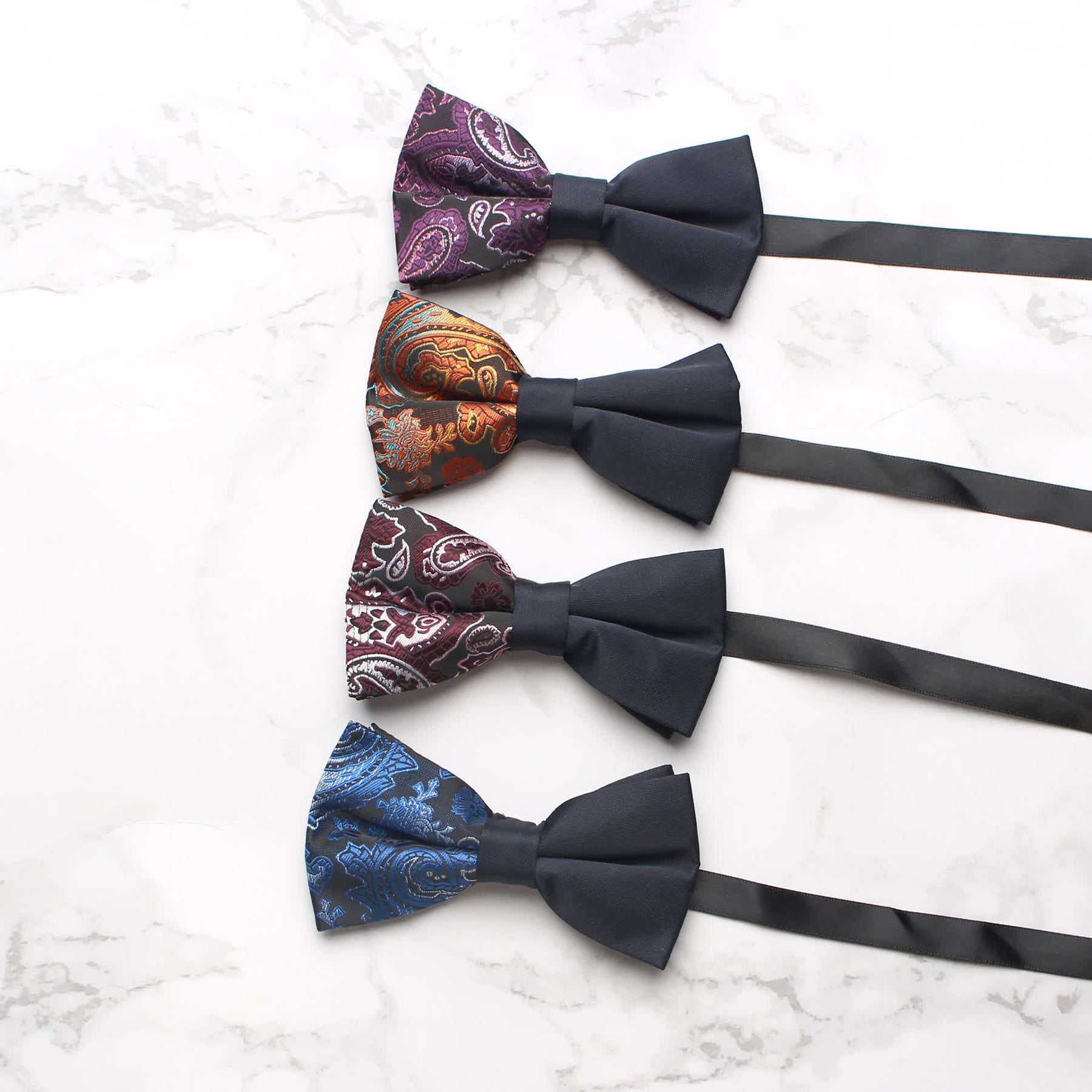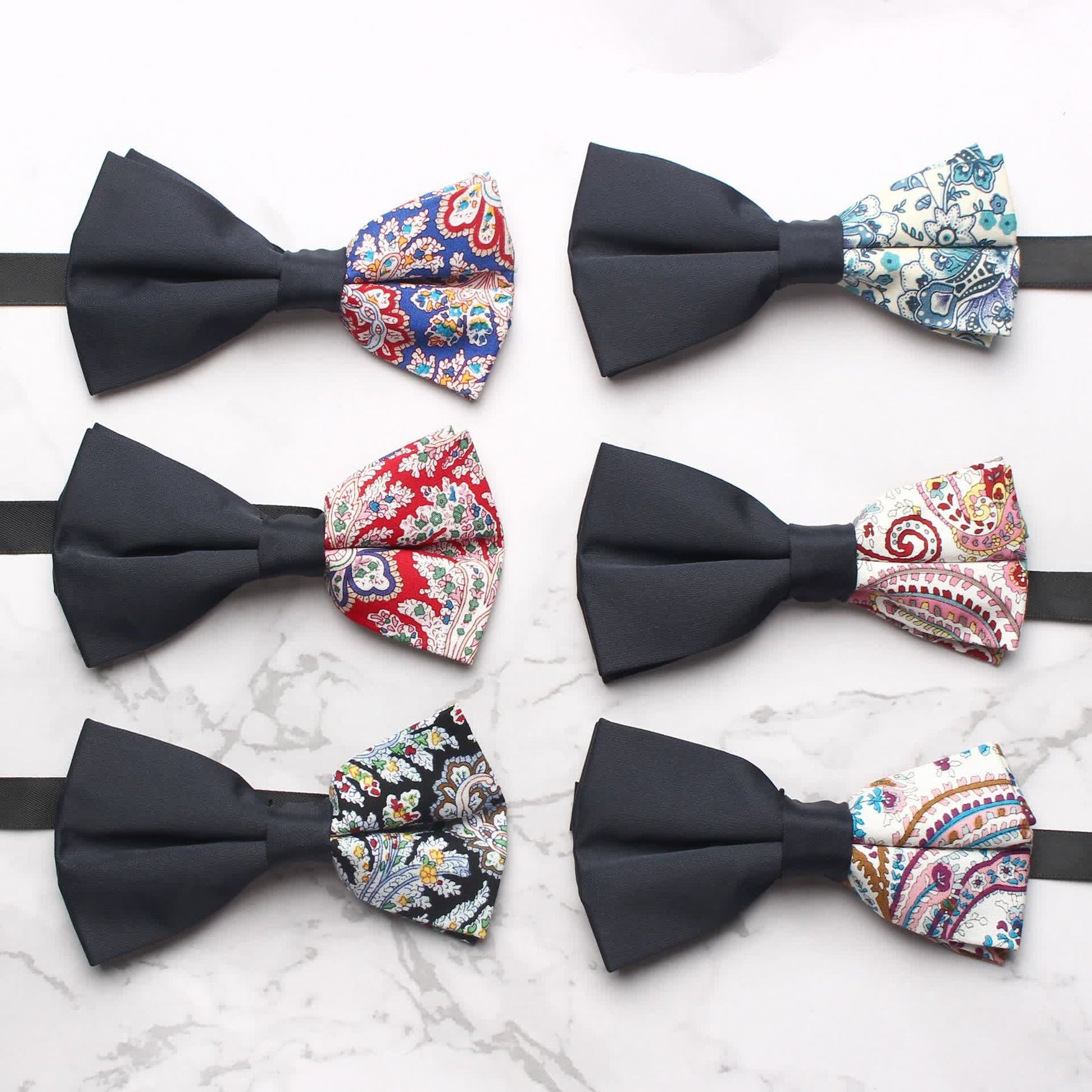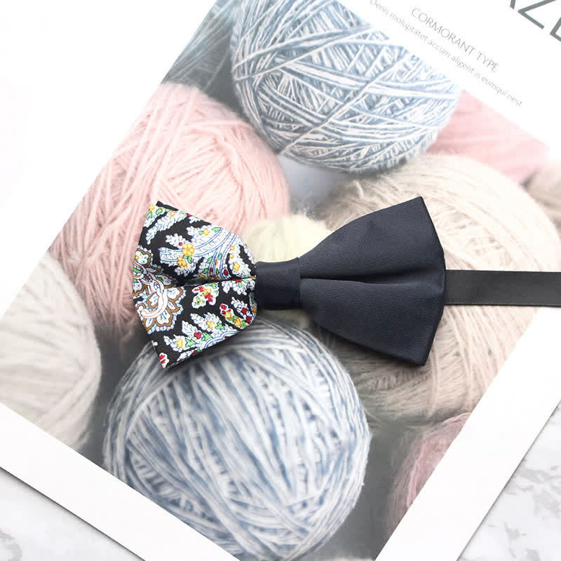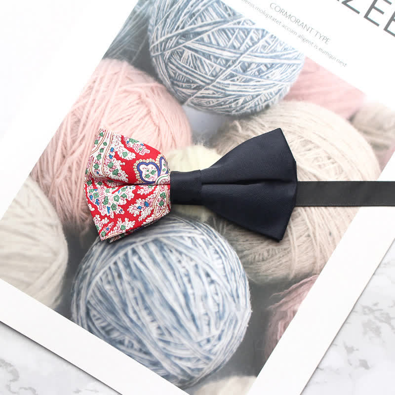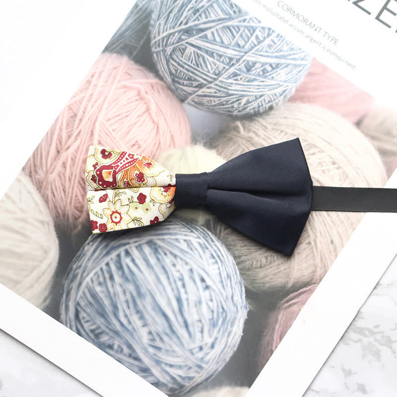 - The bow tie has subtle paisley patterns that give it a distinctive look.