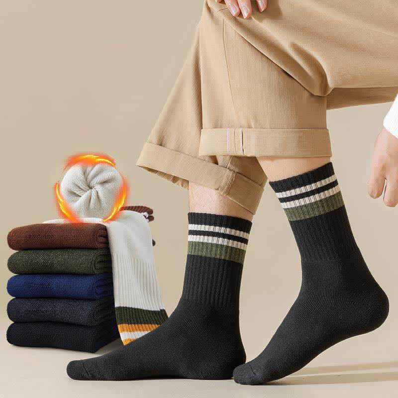 Enjoy the comfort and style of our socks each day of the week. Featuring playful vintage stripes, these winter striped mid calf socks are both stylish and will stand out or blend in with your outfit.