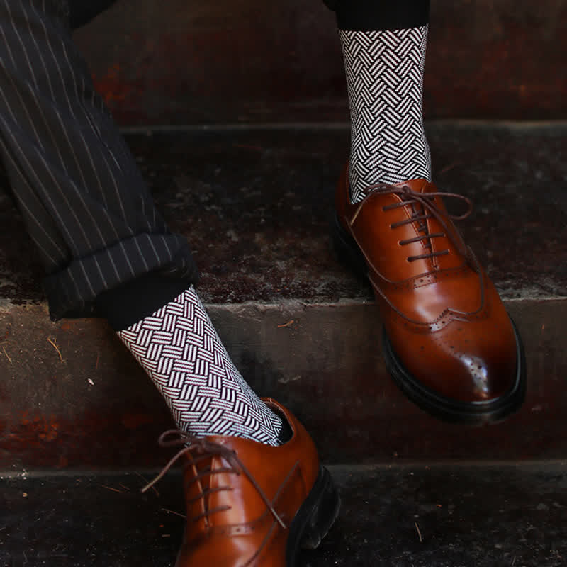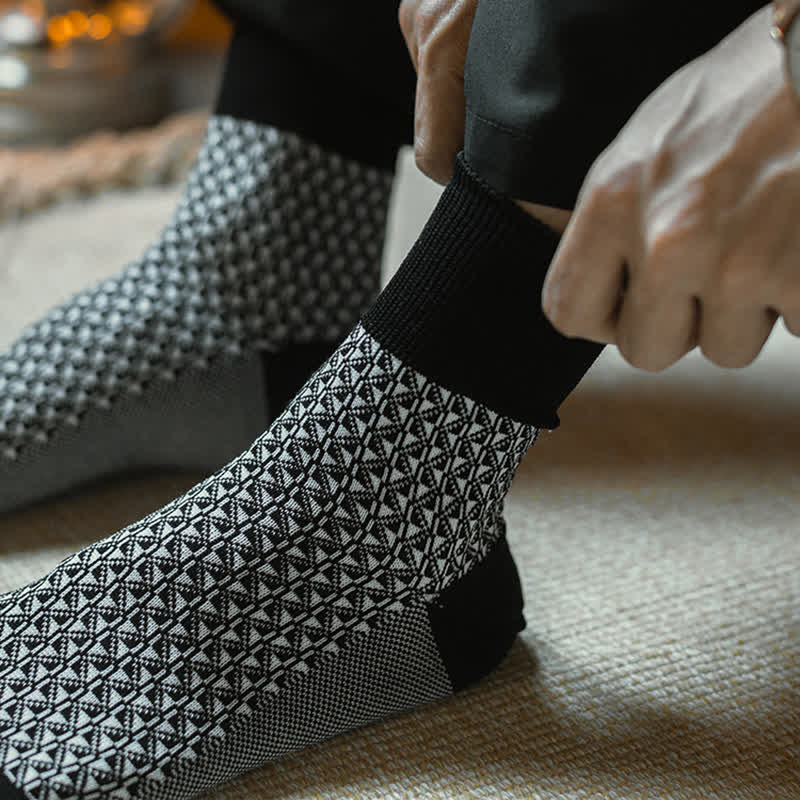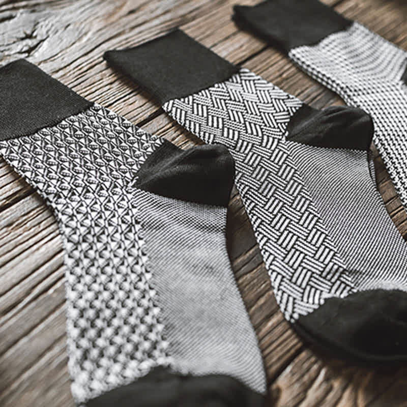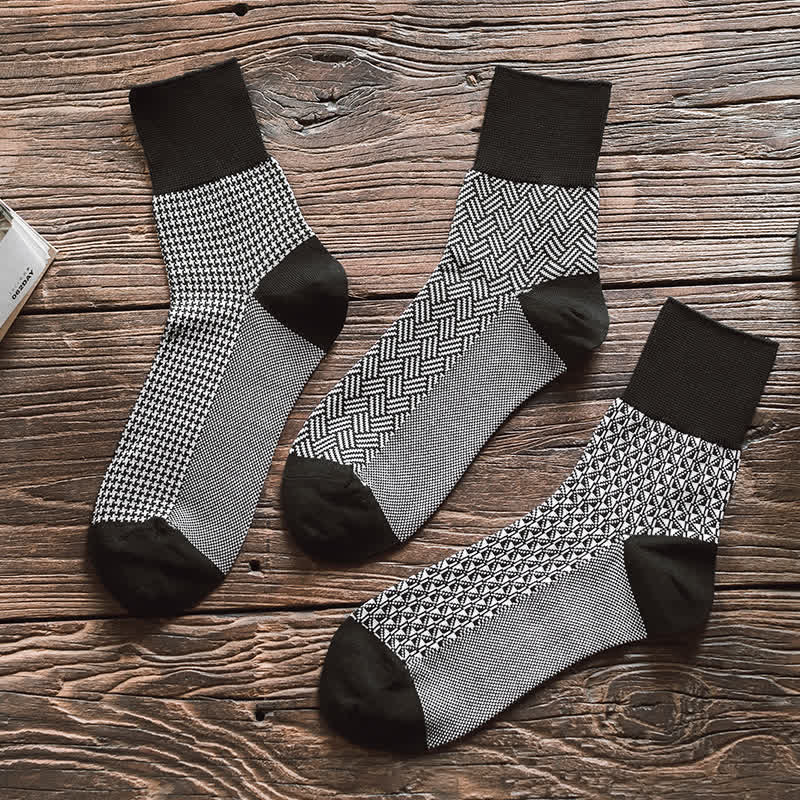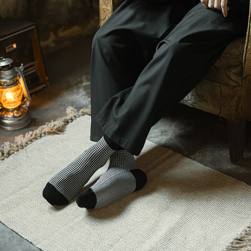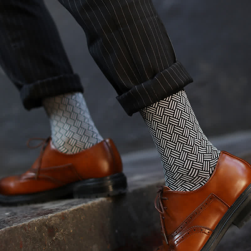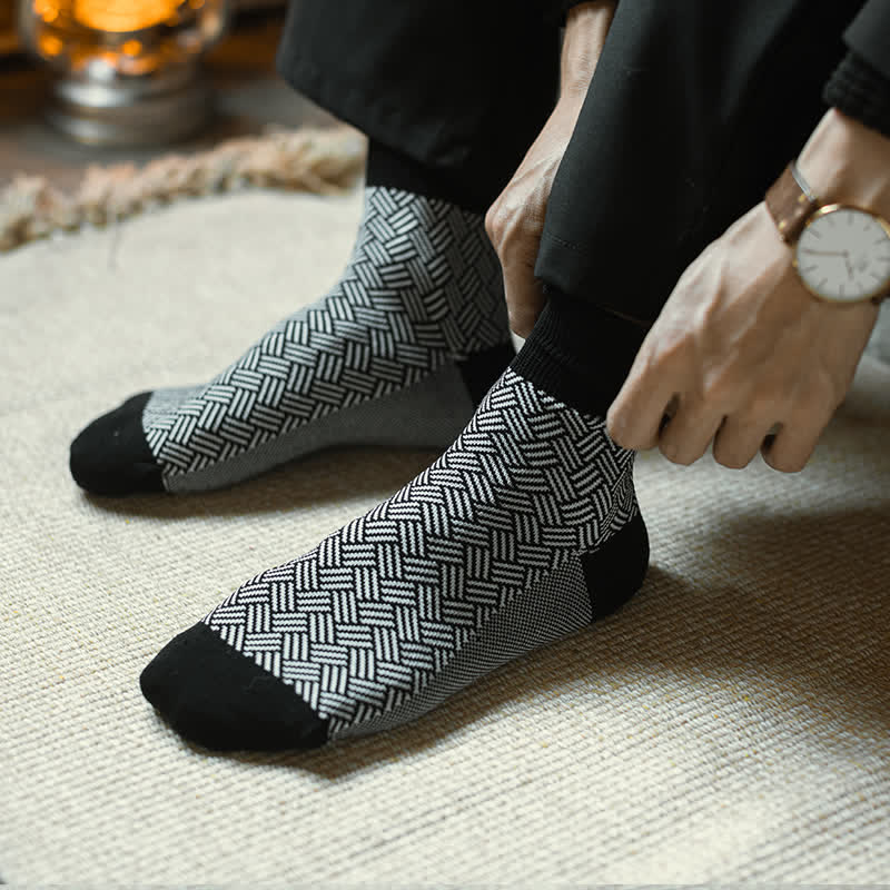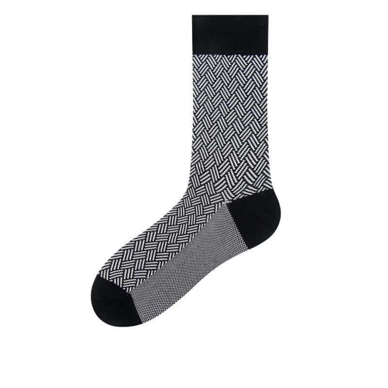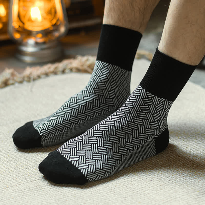 Men's Black Leisure Lattice Striped Crew Socks