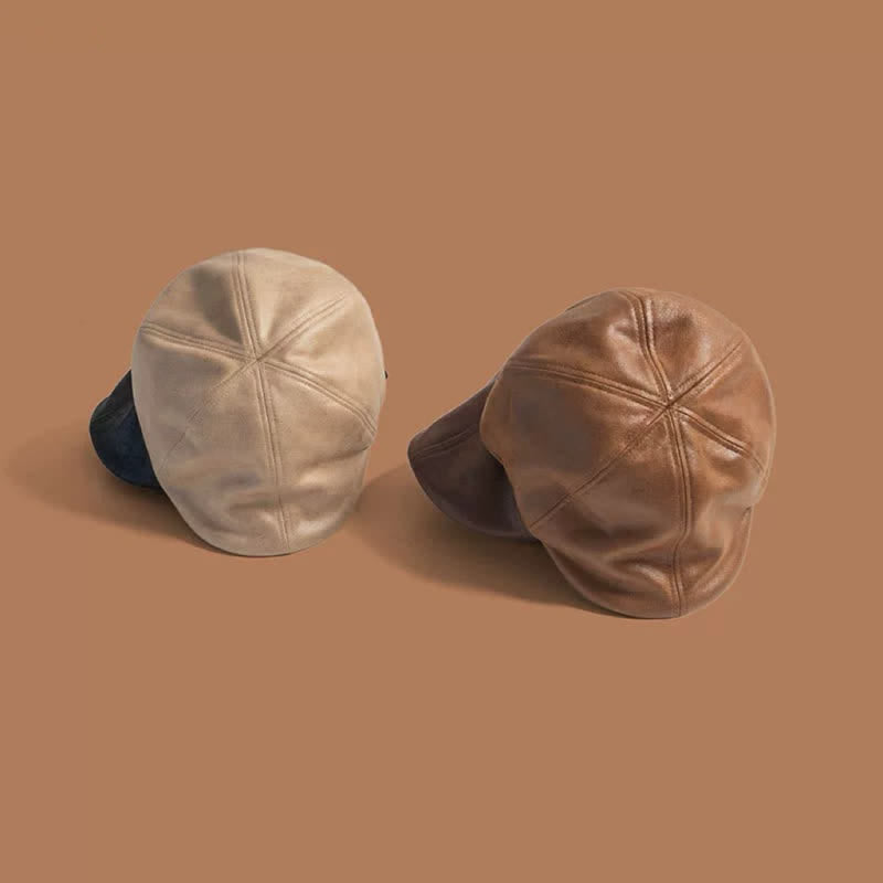 Octagonal Flat Head Retro Style Leather Beret Hat