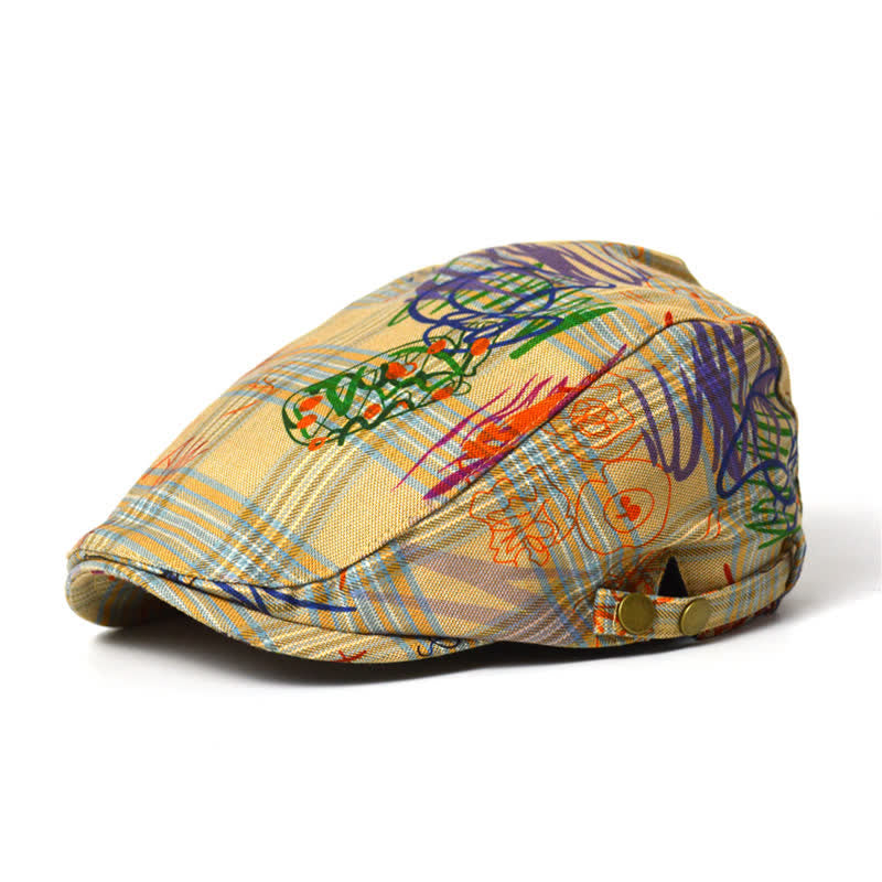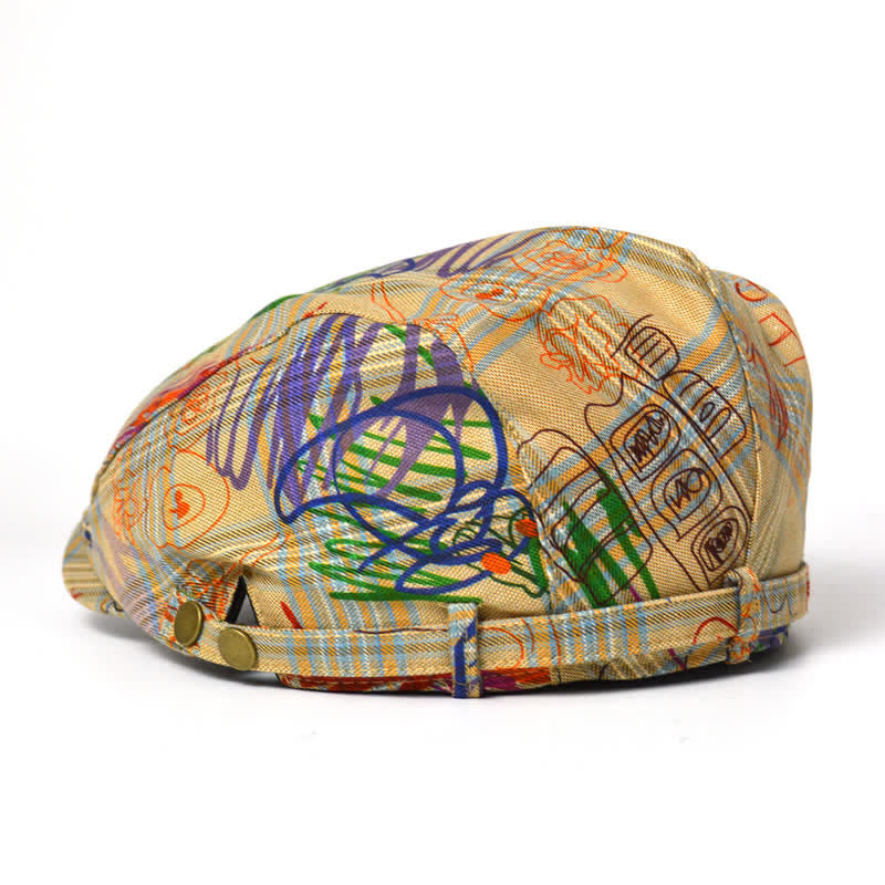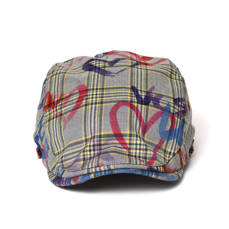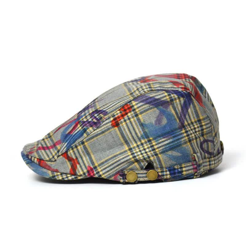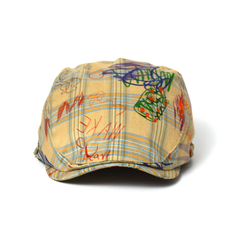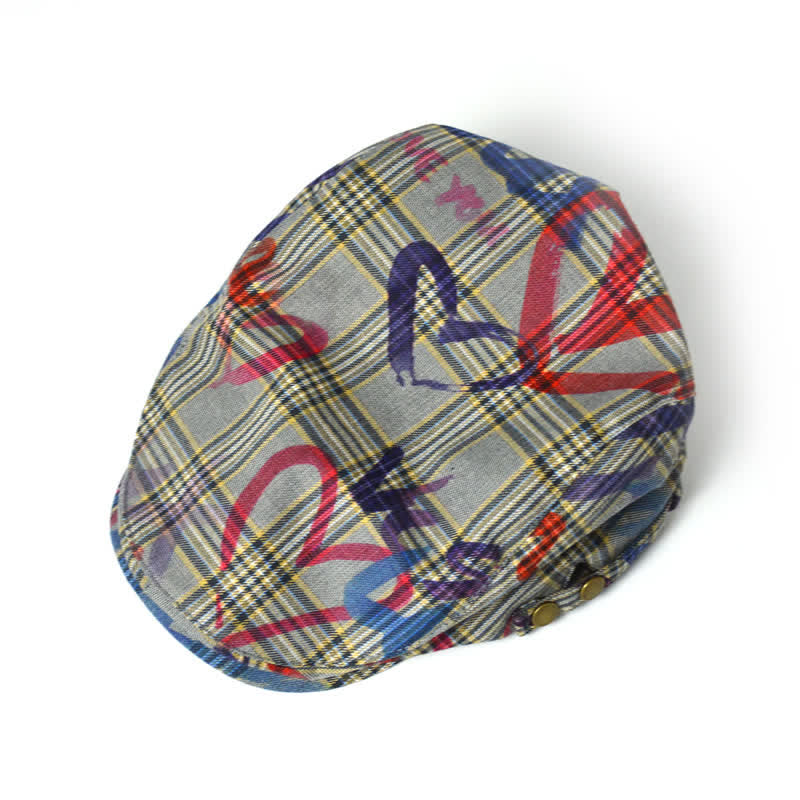 Unique Stylish Graffiti Pattern Plaid Beret Hat