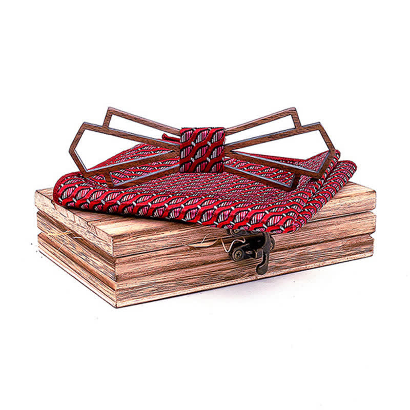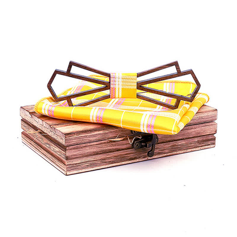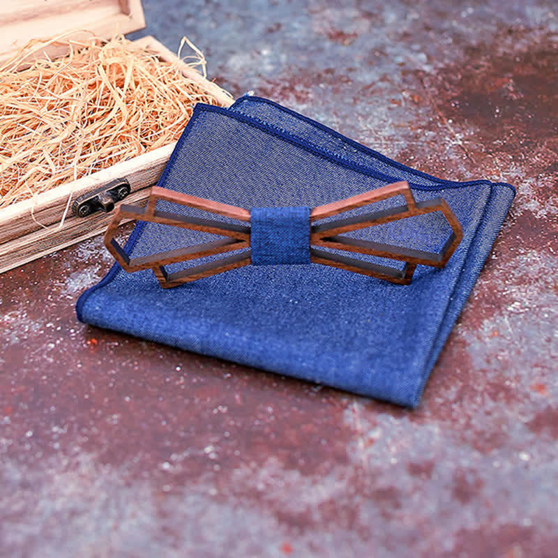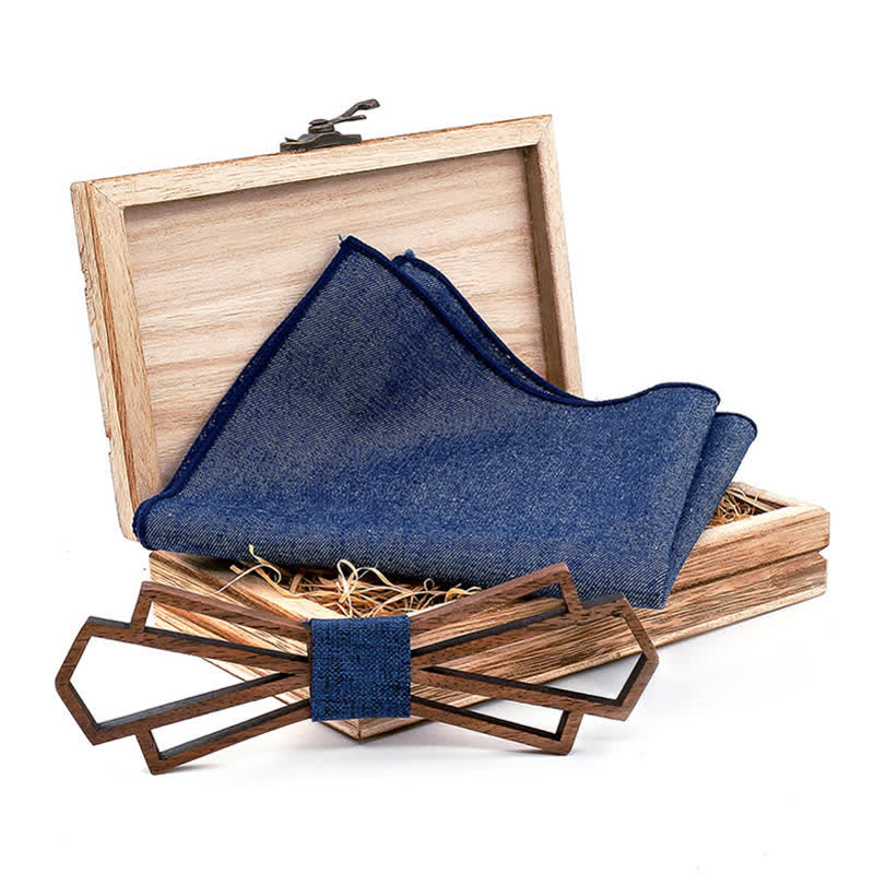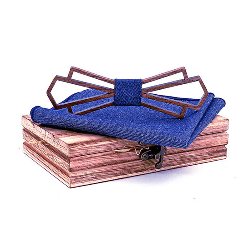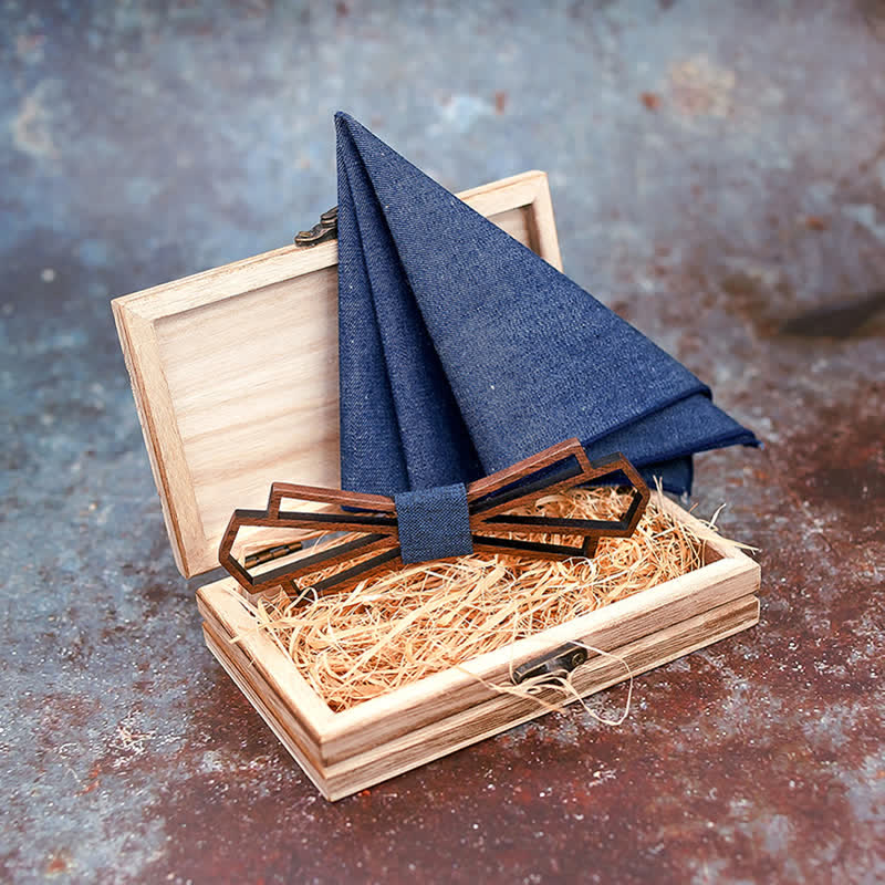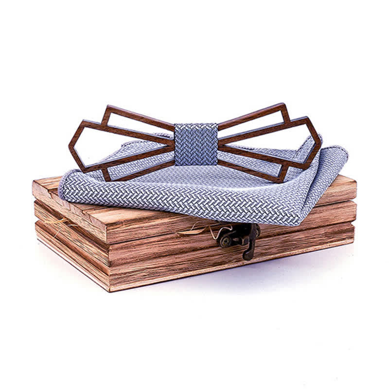 - Set Inclued: Wood bow tie & Handkerchief set with wooden gift box.