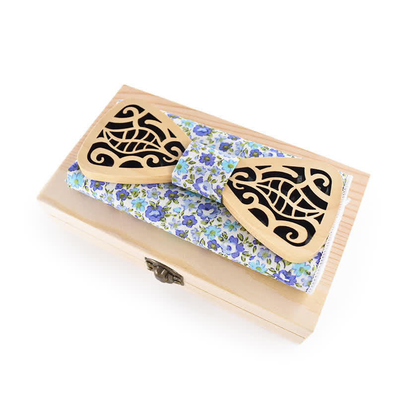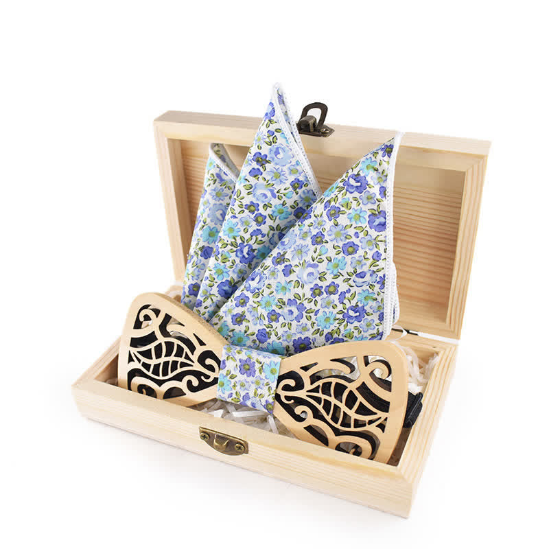 - Set Inclued: Wood bowtie & Handkerchief with a wooden gift box.