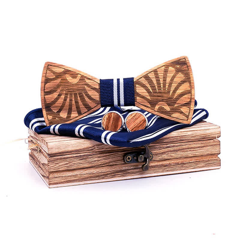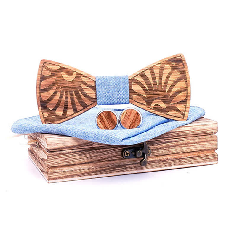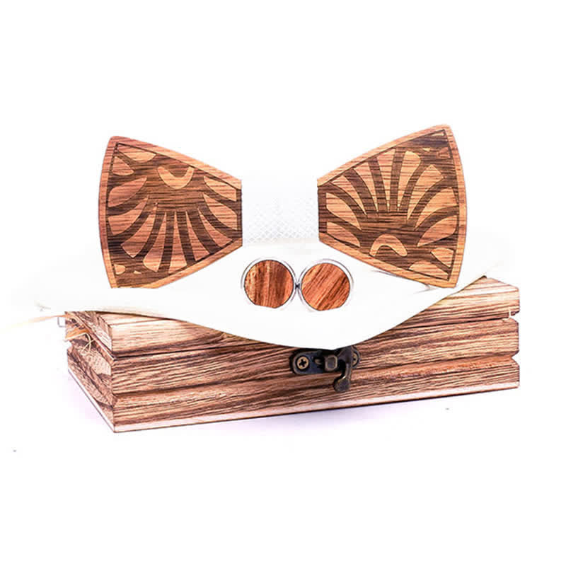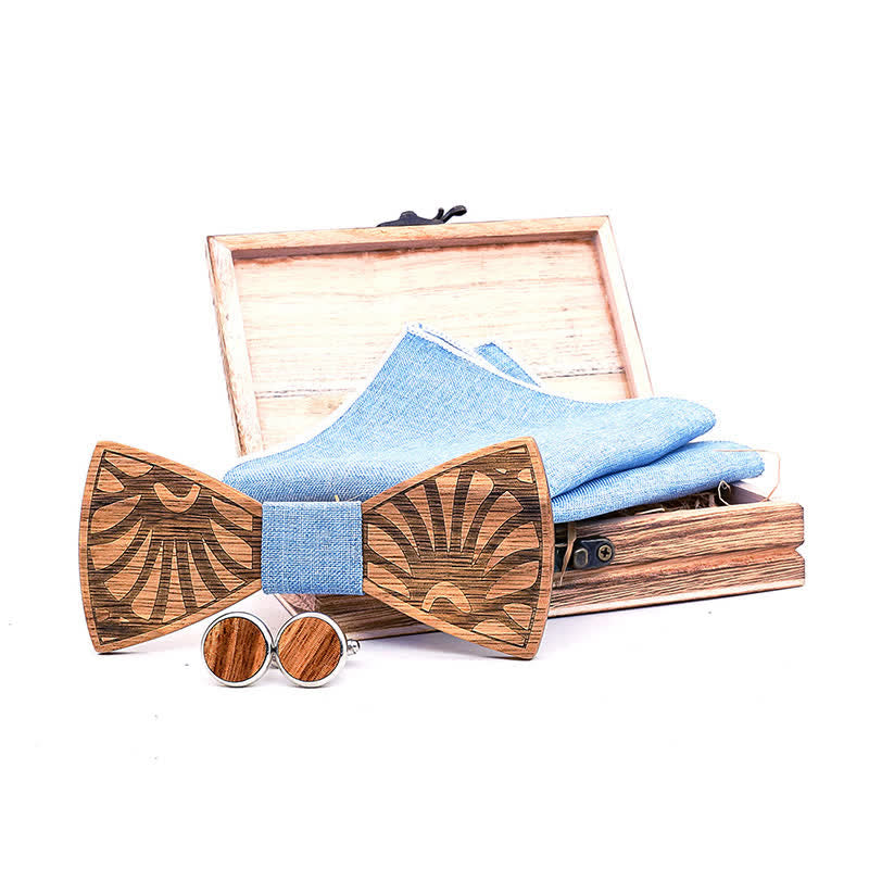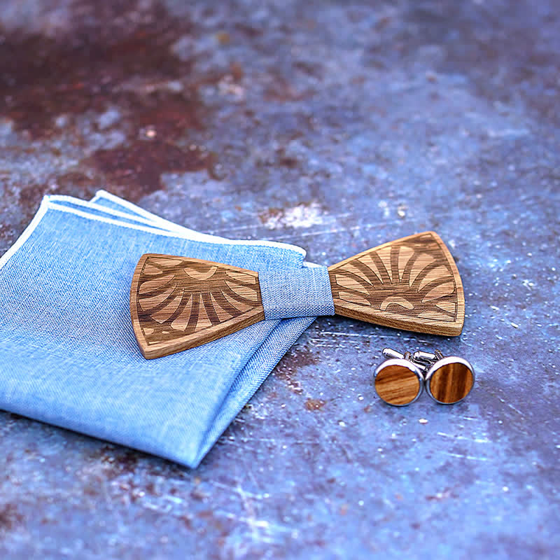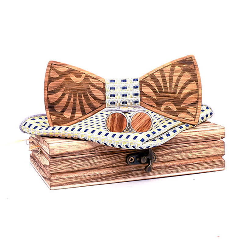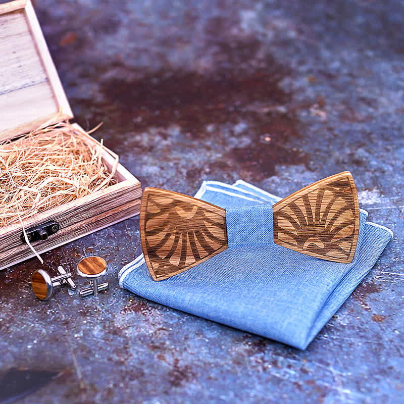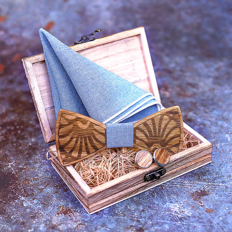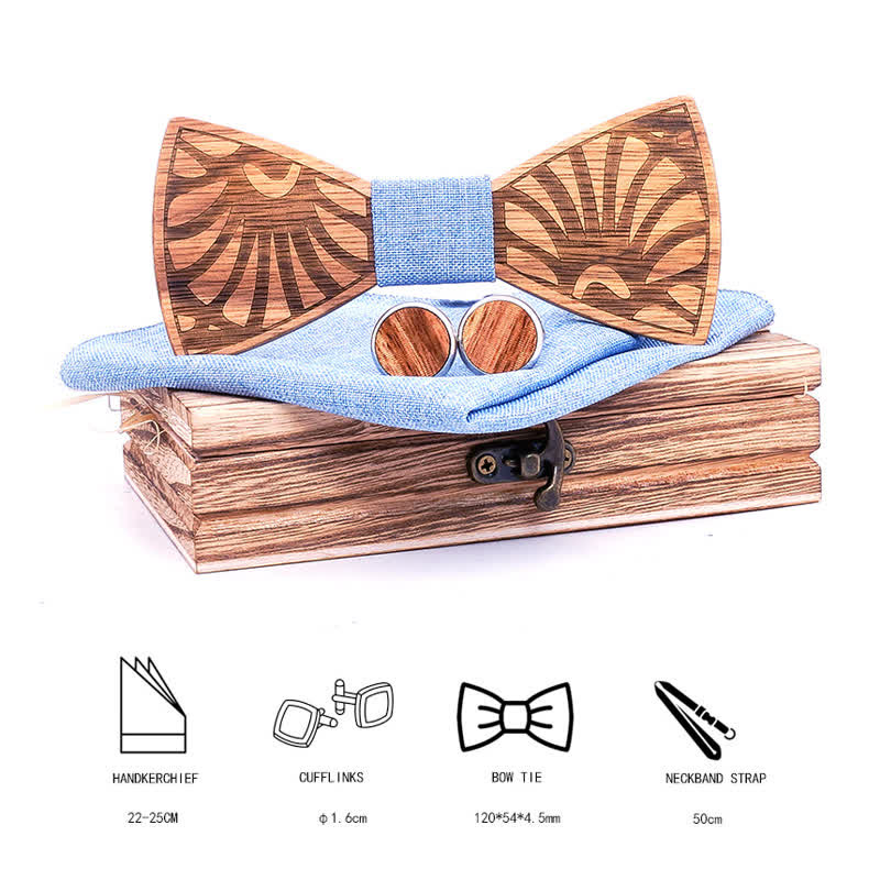 - Set Inclued: Wood bowtie, Handkerchief & Cufflinks set with a wooden gift box.