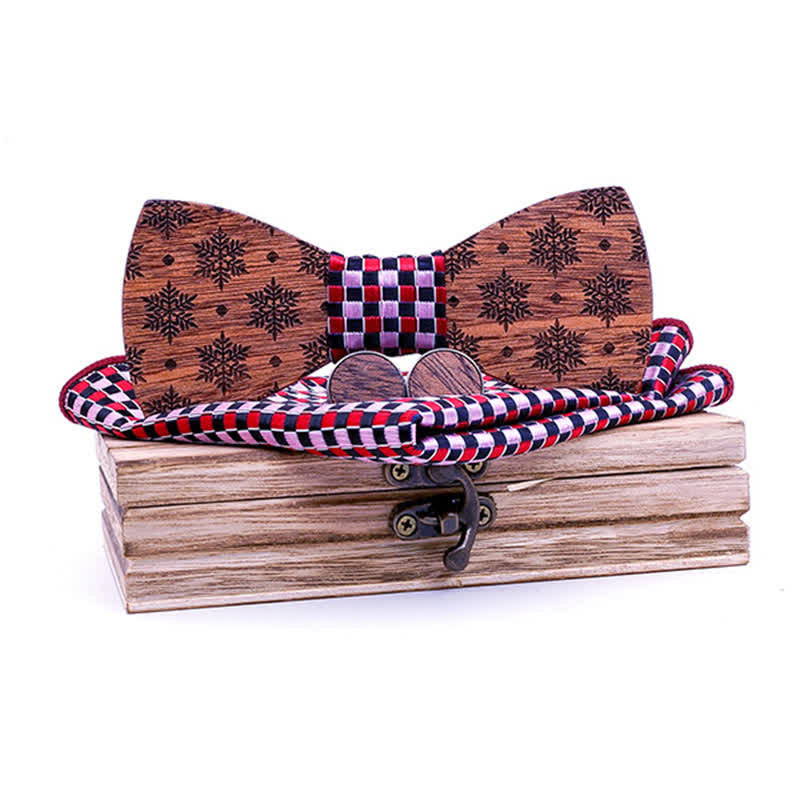 - Set Inclued: Wood bowtie, Handkerchief & Cufflinks set with wooden gift box.
