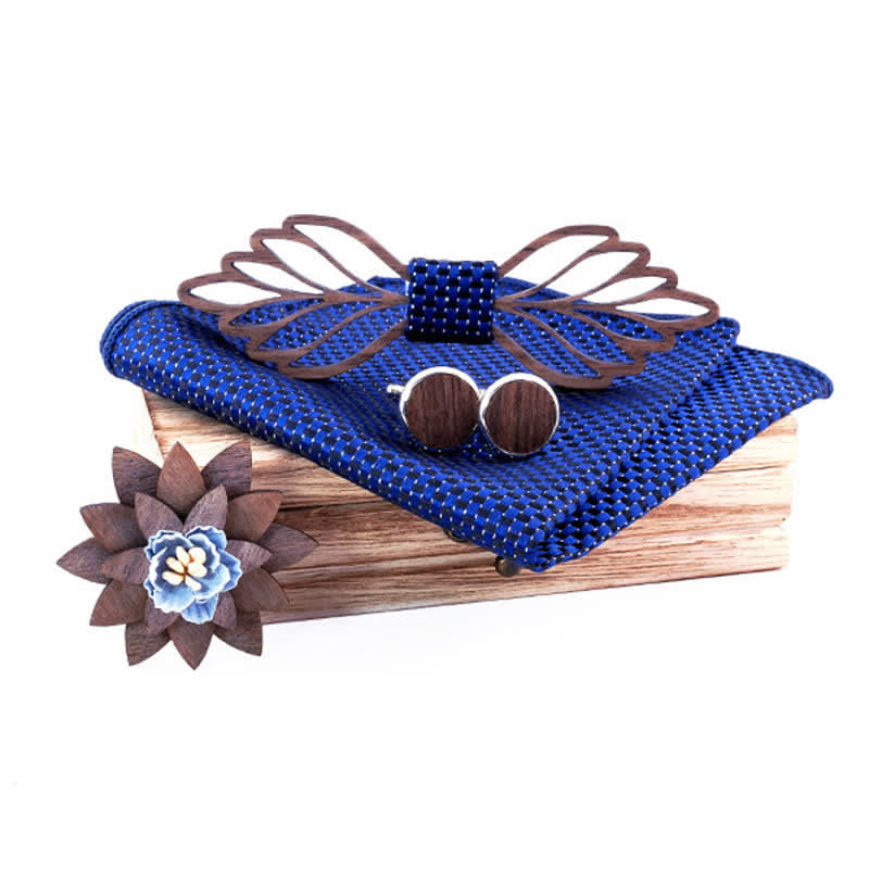 - Set Inclued: Wood bow tie x1, Handkerchief & Lapel pin & Cufflinks set with wooden gift box.