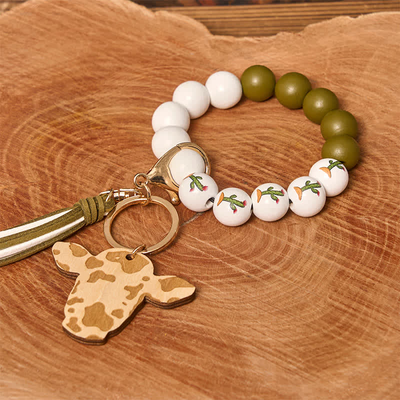 This wooden bead wrist chain keychain is lightweight, premium, durable, and sturdy. This keychain comes with a wooden bead bracelet, cow ornament and tassel pendant. Fashionable and full of creativity. It can be paired with a cards bag, wallet, car key bag or small doll to enrich other usage functions.