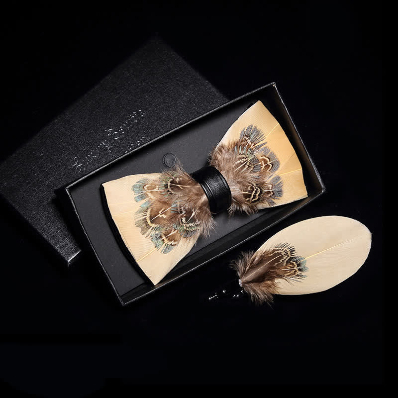 - Features: Pale yellow feather bow ties are so stylish and elegant, full of color and made from pheasant feathers, makes you the focus of attention in a crowded room.