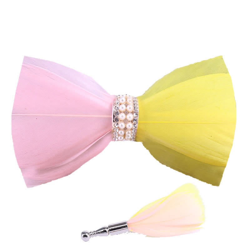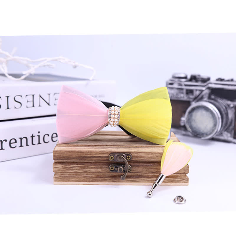- Features: Adopted the contrast color design, fashionable and halfback, this bowtie makes your color in the outfit game more thoroughly and more fashionable. Wear this trendy feather bow tie and throw the rule book away to get clash happy.
