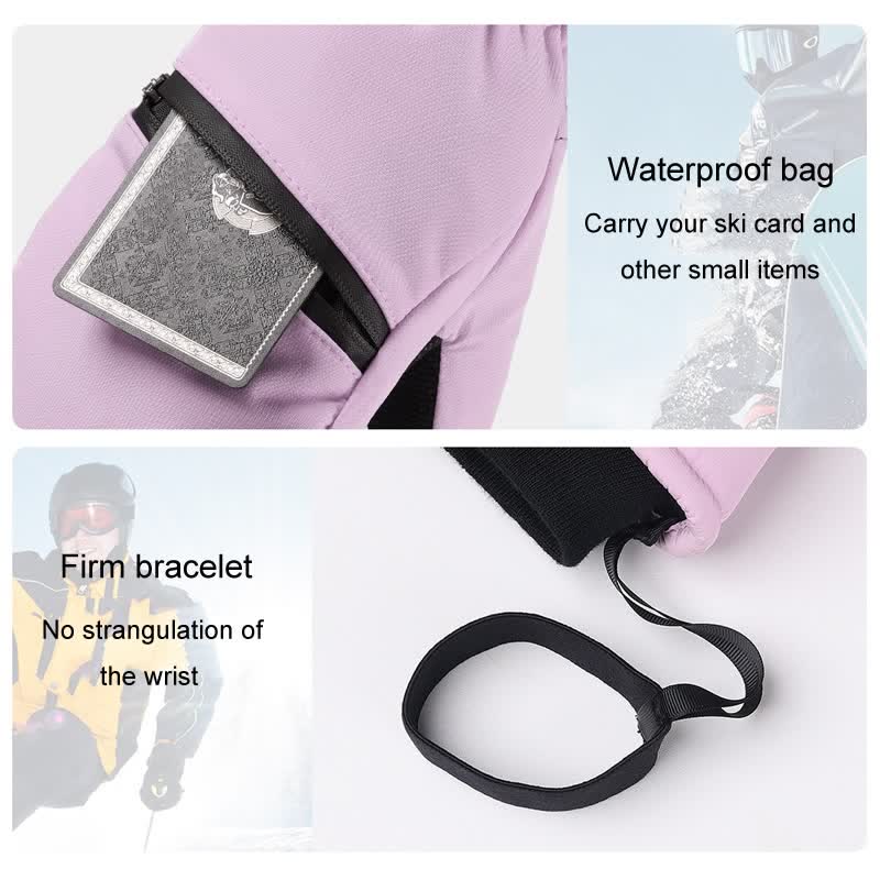 Winter Padded Zipper Pocket Ski Sports Gloves